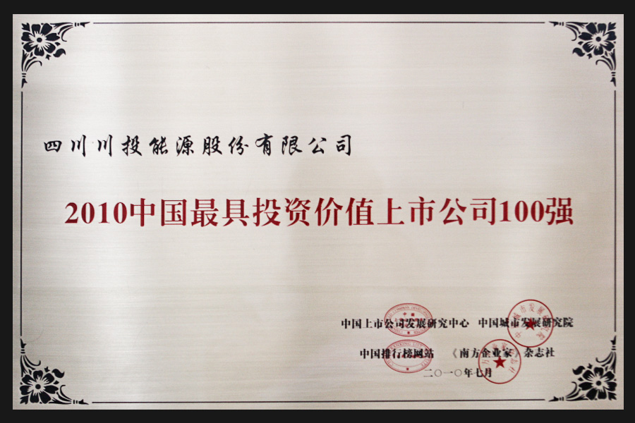 近年來,川投能源備受資本市場和社會(huì)各界青睞,連續(xù)入選滬深300指數(shù)樣本股、中證800指數(shù)樣本股、上證380指數(shù)樣本股、MSCI新興市場指數(shù)、MSCI ACWI全球指數(shù),同時(shí)作為首批中國A股股票納入富時(shí)全球股票指數(shù)系列和標(biāo)普新興市場全球基準(zhǔn)指數(shù);先后獲得“中國證券市場年會(huì)金鳳凰獎(jiǎng)”、“中國上市公司市值管理百家優(yōu)秀公司”、“最守誠信上市公司”、“最具投資價(jià)值上市公司”、《上海證券報(bào)》“公司治理資本創(chuàng)新公司獎(jiǎng)”等榮譽(yù);獲得中華全國總工會(huì)授予的“抗震救災(zāi)恢復(fù)重建工人先鋒號(hào)”、“全國汶川地震災(zāi)后恢復(fù)重建先進(jìn)集體”;1998—2011年連續(xù)13年獲得“四川省重合同守信用先進(jìn)單位”稱號(hào);2011年8月,榮獲“全國模范勞動(dòng)關(guān)系和諧企業(yè)”稱號(hào);2011年11月,在《每日經(jīng)濟(jì)新聞報(bào)》聯(lián)合多家媒體和116家機(jī)構(gòu)評(píng)委傾力打造的全國上市公司“口碑榜”評(píng)選中,被代表市場2萬億元資金的廣大投資者評(píng)選為“最具成長潛力上市公司”;2011年12月,榮獲上海證券交易所評(píng)選的中國公司治理最高榮譽(yù)——“2011年度董事會(huì)獎(jiǎng)提名獎(jiǎng)”、“2011年度典型并購重組案例獎(jiǎng)提名獎(jiǎng)”;2012年9月,川投能源黨委榮獲“全省創(chuàng)先爭優(yōu)先進(jìn)基層黨組織”稱號(hào); 2015年公司還獲得了由中國上市公司協(xié)會(huì)、中國證券投資者保護(hù)基金公司、上海證券交易所、深圳證券交易所、中國證券業(yè)協(xié)會(huì)、中國證券投資基金業(yè)協(xié)會(huì)聯(lián)合頒發(fā)的“2015中國最受投資者尊重的上市公司”入圍獎(jiǎng)。2022年6月,入選中國上市公司協(xié)會(huì)“2021年度A股上市公司現(xiàn)金分紅榜單豐厚回報(bào)榜”;2023年11月獲得中國證券報(bào)頒發(fā)的“第二十五屆上市公司金牛獎(jiǎng)·2022年度金信披獎(jiǎng)”;2024年10月被證券時(shí)報(bào)評(píng)選為“主板上市公司價(jià)值100強(qiáng)”。主體信用等級(jí)長期維持AAA,以優(yōu)良的業(yè)績持續(xù)回報(bào)投資人,受到國內(nèi)國際兩個(gè)市場的高度關(guān)注和價(jià)值認(rèn)可。