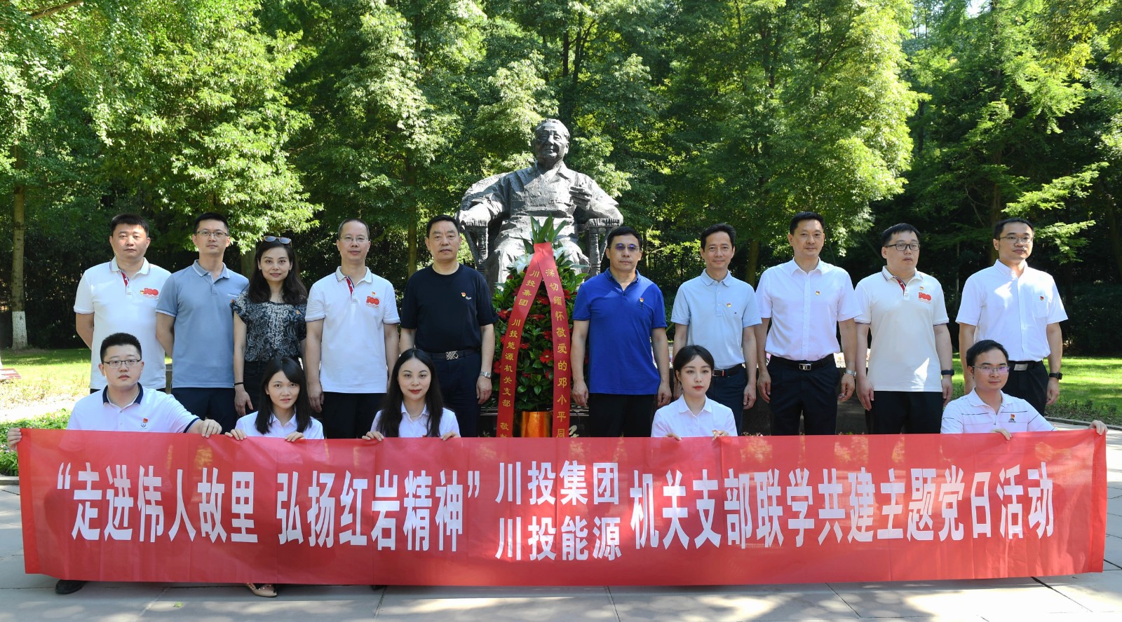 在建黨101周年之際,7月7日至8日,川投集團(tuán)、川投能源機(jī)關(guān)支部赴廣安市開(kāi)展“走進(jìn)偉人故里,弘揚(yáng)紅巖精神”聯(lián)學(xué)共建主題黨日活動(dòng),緬懷偉人豐功偉績(jī),弘揚(yáng)先輩奮斗精神,繼承紅色優(yōu)良傳統(tǒng)。集團(tuán)公司黨委副書(shū)記、董事鄧凱,黨委委員、副總經(jīng)理王懷林,副總經(jīng)理張昊參加活動(dòng)。