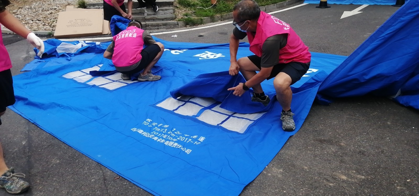 在當(dāng)?shù)匾咔榉揽刂笓]部的帶領(lǐng)下,王成勇、祝長青,身披“志愿紅”,深入封控區(qū)域,從晨光熹微到燈火闌珊,一整天都是后背全濕,每一天都是腰酸背痛。但他們明白,“哪里需要就沖向哪里”。二人先后9次進(jìn)入高風(fēng)險(xiǎn)區(qū)搭建應(yīng)急帳篷,為的是這一頂頂帳篷能夠?yàn)閬碜运拿姘朔?、各行各業(yè)的志愿者們遮風(fēng)擋雨,每天一趟趟一袋袋的蔬菜、肉、米、油,讓當(dāng)?shù)鼐用衽c游客每天都能夠安心避疫。