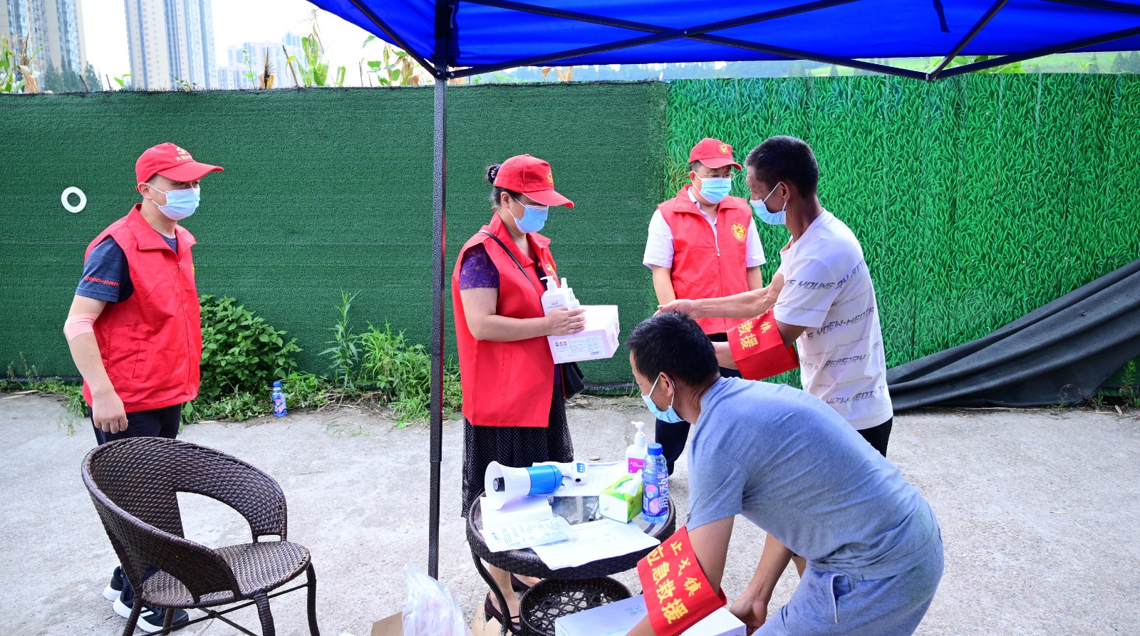 烈日高溫使豆大的汗珠從謝愛東的額頭不斷滑落,每當(dāng)其他志愿者提出換她休息時(shí),“沒問題,我可以的”便是不變的回應(yīng)?!芭c家鄉(xiāng)人民一道共度難關(guān),哪怕再熱、再苦、再累都值得?!?