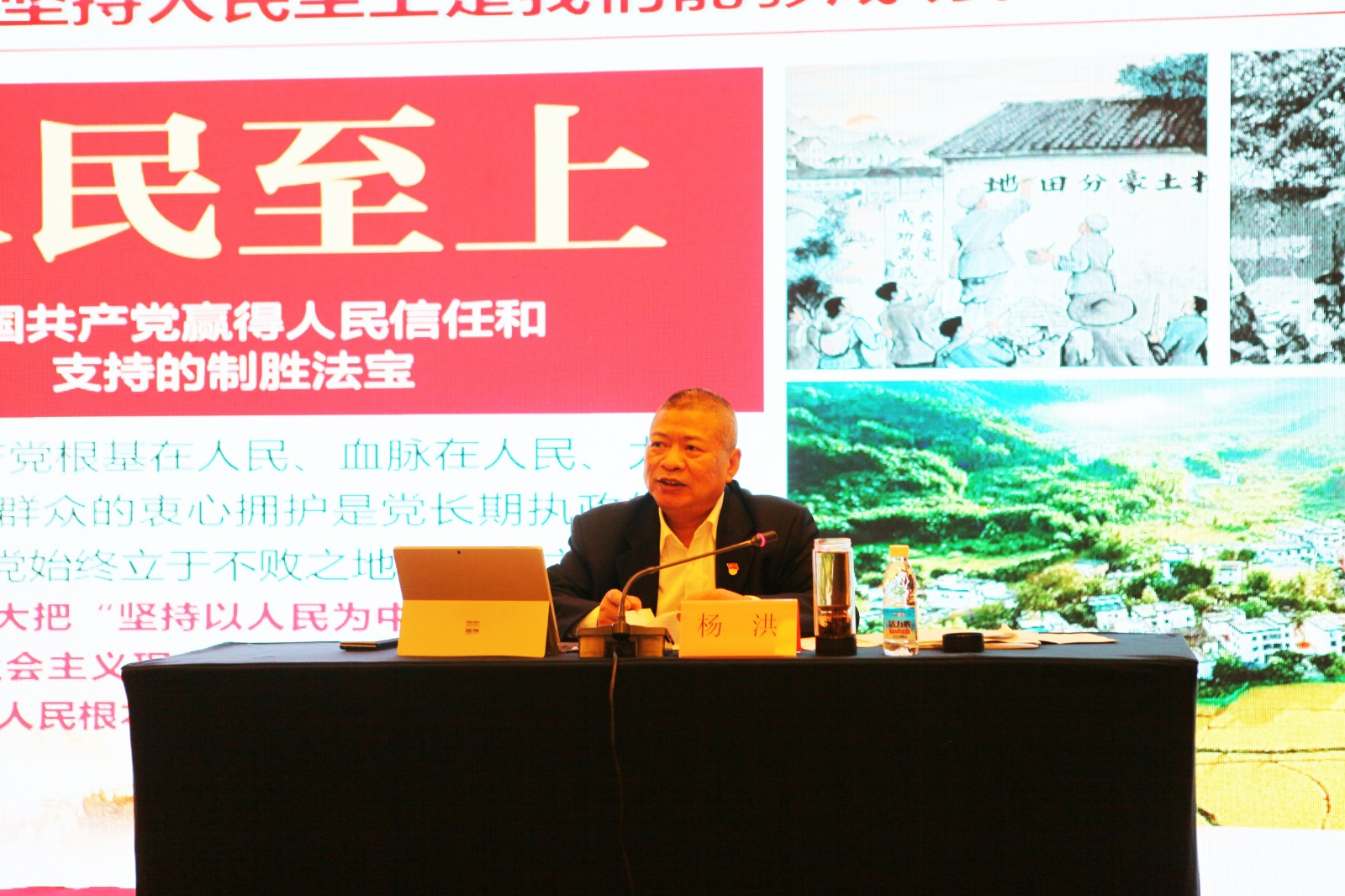 楊洪以《學(xué)習(xí)黨的歷史決議,汲取黨的歷史經(jīng)驗(yàn),以強(qiáng)烈的歷史主動(dòng)精神推動(dòng)高質(zhì)量發(fā)展》為題,圍繞黨的三個(gè)歷史決議的制定背景、主要內(nèi)容、邏輯關(guān)系、戰(zhàn)略價(jià)值等方面講授“開班第一課”。他指出,重視歷史、借鑒歷史,是我們黨在長期實(shí)踐中形成的優(yōu)良傳統(tǒng)和政治優(yōu)勢。他強(qiáng)調(diào),黨的三個(gè)歷史決議深刻揭示了黨的歷史發(fā)展的主題主線、主流本質(zhì)、規(guī)律認(rèn)識(shí),廣大黨員干部要深入學(xué)習(xí)、融會(huì)貫通,特別是對黨的第三個(gè)決議關(guān)于“十個(gè)堅(jiān)持”的歷史經(jīng)驗(yàn)總結(jié)要倍加珍惜、始終堅(jiān)持,不斷堅(jiān)定歷史自信、把握歷史規(guī)律、掌握歷史主動(dòng),把學(xué)習(xí)成效轉(zhuǎn)化為干事創(chuàng)業(yè)的動(dòng)力,在新的趕考之路上跑出加速度、創(chuàng)造新輝煌。