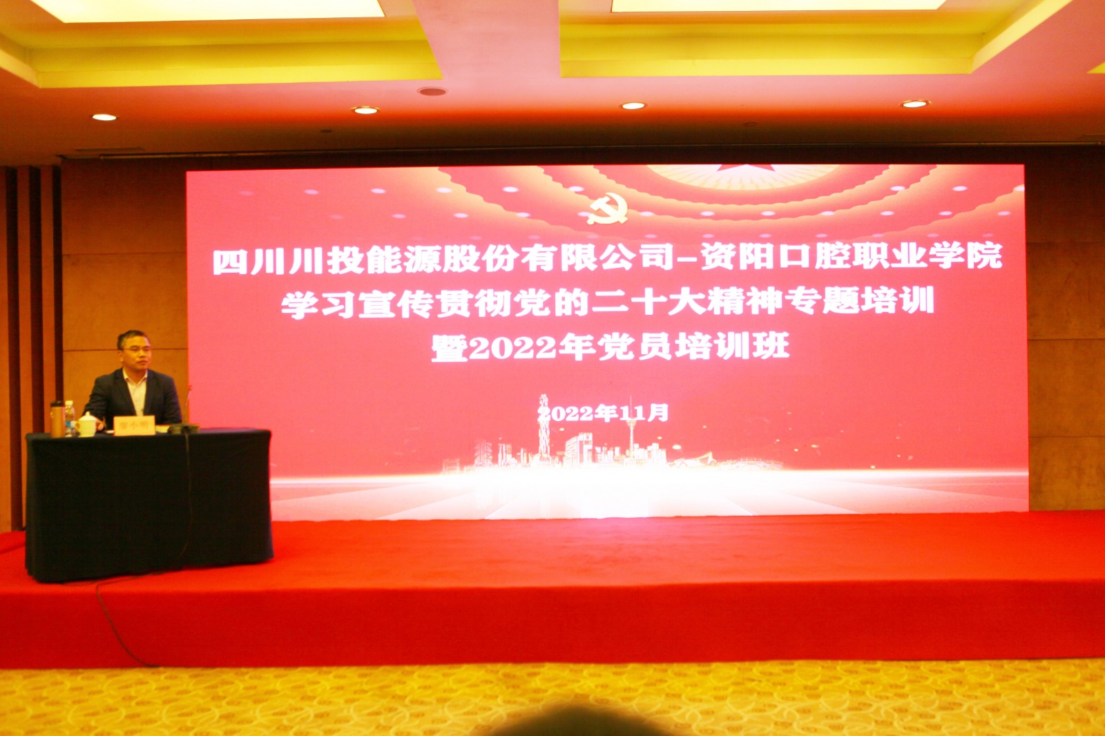 為深入學(xué)習(xí)宣傳貫徹黨的二十大精神,鞏固拓展黨史學(xué)習(xí)教育成果,不斷夯實(shí)全體黨員忠誠擁護(hù)“兩個(gè)確立”、堅(jiān)決做到“兩個(gè)維護(hù)”的政治自覺、思想自覺、行動(dòng)自覺,11月21日-22日,川投能源黨委與資陽口腔職業(yè)學(xué)院黨委共同舉辦學(xué)習(xí)宣傳貫徹黨的二十大精神專題培訓(xùn)暨2022年黨員培訓(xùn)班。川投能源黨委書記、副董事長、總經(jīng)理?xiàng)詈槌鱿⑹谡n,資陽口腔職業(yè)學(xué)院黨委書記、理事長張中偉出席并作開班講話,川投能源黨委副書記、工會(huì)主席冉蘭平主持開班儀式。