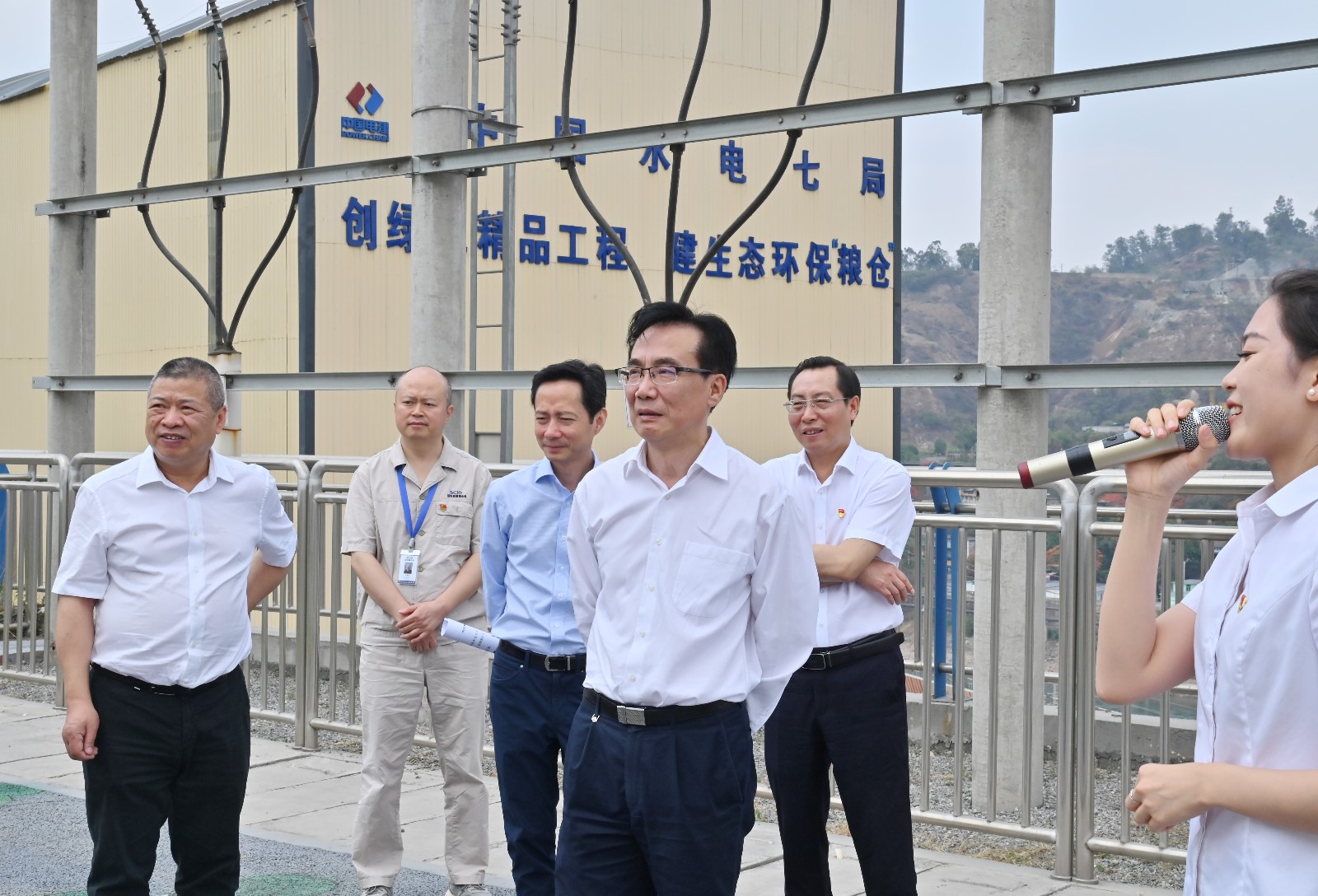 吳曉曦一行先后來到銀江水電站施工變電站觀景平臺、上游圍堰詳細了解項目整體規(guī)劃、建設(shè)意義、工期計劃、目前施工進度、安全環(huán)保及防洪度汛等情況。