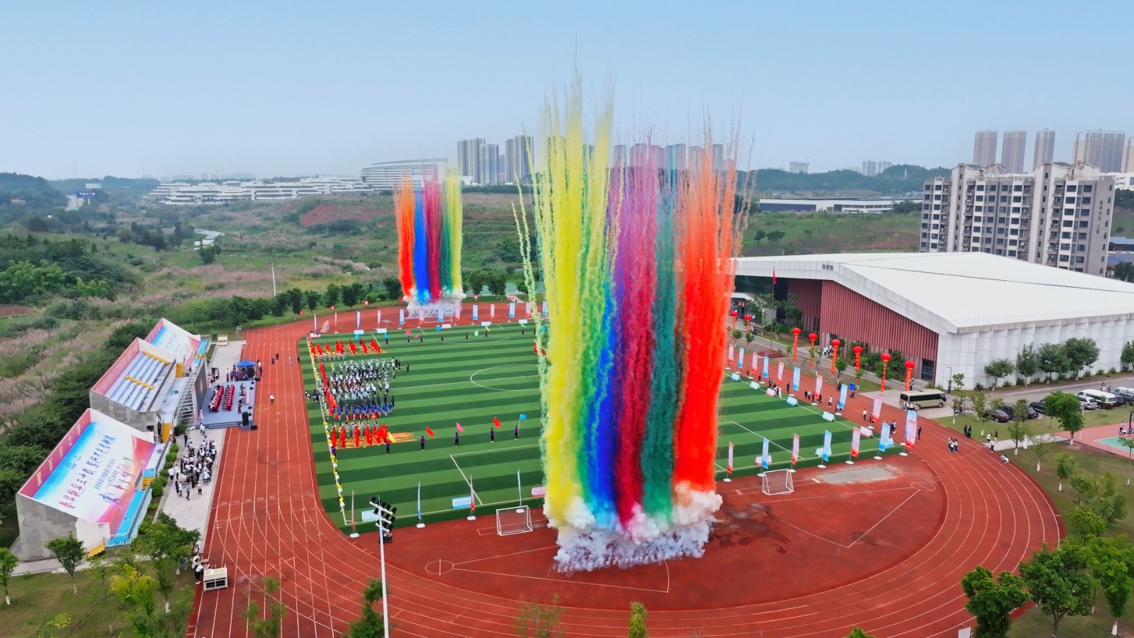 15時35分許,吳曉曦宣布:“川投能源2023年職工運動會開幕!”與會嘉賓共同按動啟動器,霎時,彩煙騰空而起,掌聲歡呼聲響徹全場,正式拉開比賽帷幕。