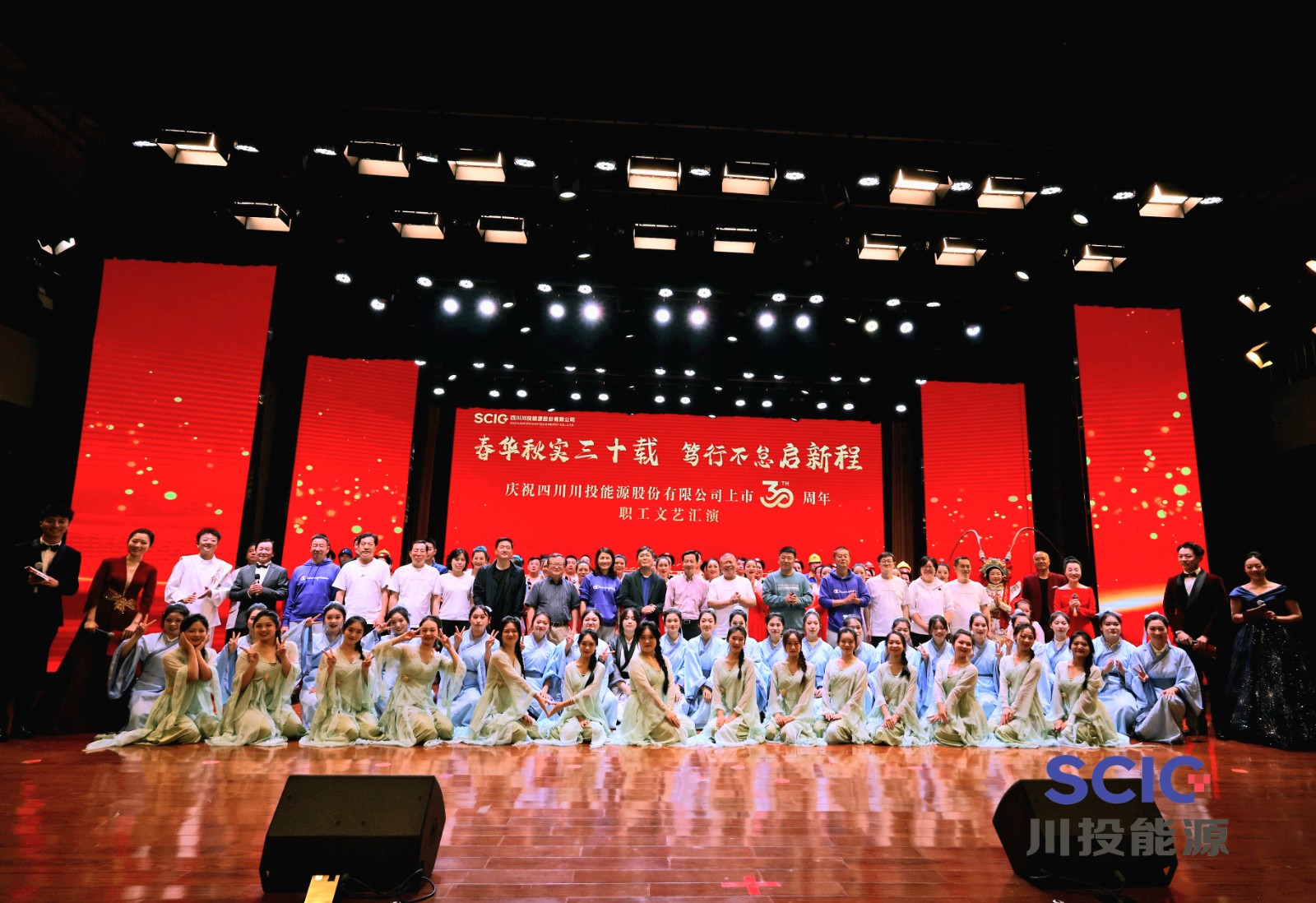 匯演現(xiàn)場,一曲激情澎湃的《鼓鳴盛世》揭開序幕,盡致展現(xiàn)國家繁榮富強,人民奮發(fā)向上的美好圖景?!断蛑诙€百年奮斗目標,前進!》,讓大家在快板聲中沐浴黨的二十大精神光輝,激勵廣大職工牢記總書記殷殷囑托,砥礪奮進新時代新征程。詩歌朗誦《春華秋實三十載 篤行不怠啟新程》,全景式回顧了川投能源上市30年來,篳路藍縷、奮發(fā)圖強,成長為四川省參控股裝機規(guī)模最大的能源上市公司的壯闊歷程?!督浀涔盼恼b讀》、川劇《川劇變臉》、歌曲《不忘初心》《新時代進行曲》等節(jié)目輪番上場,舞蹈《川投水電人》《燈》《小城謠》《心彝銀江》精彩不斷,現(xiàn)場氣氛高潮迭起,贏得觀眾陣陣掌聲。最后,隨著《歌唱祖國》旋律的響起,在全場大合唱中,演出圓滿落幕。