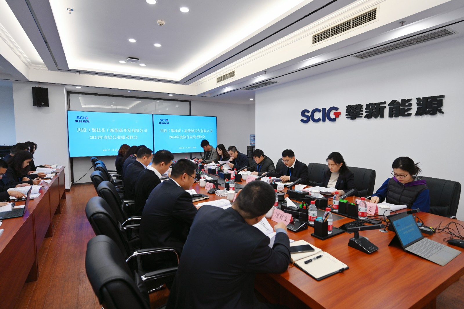 近日,川投能源黨委委員、副總經(jīng)理、總法律顧問楊平及綜合業(yè)績考核組一行赴攀新能源公司開展綜合業(yè)績考核工作,攀新能源領(lǐng)導班子成員及職工代表參加會議。