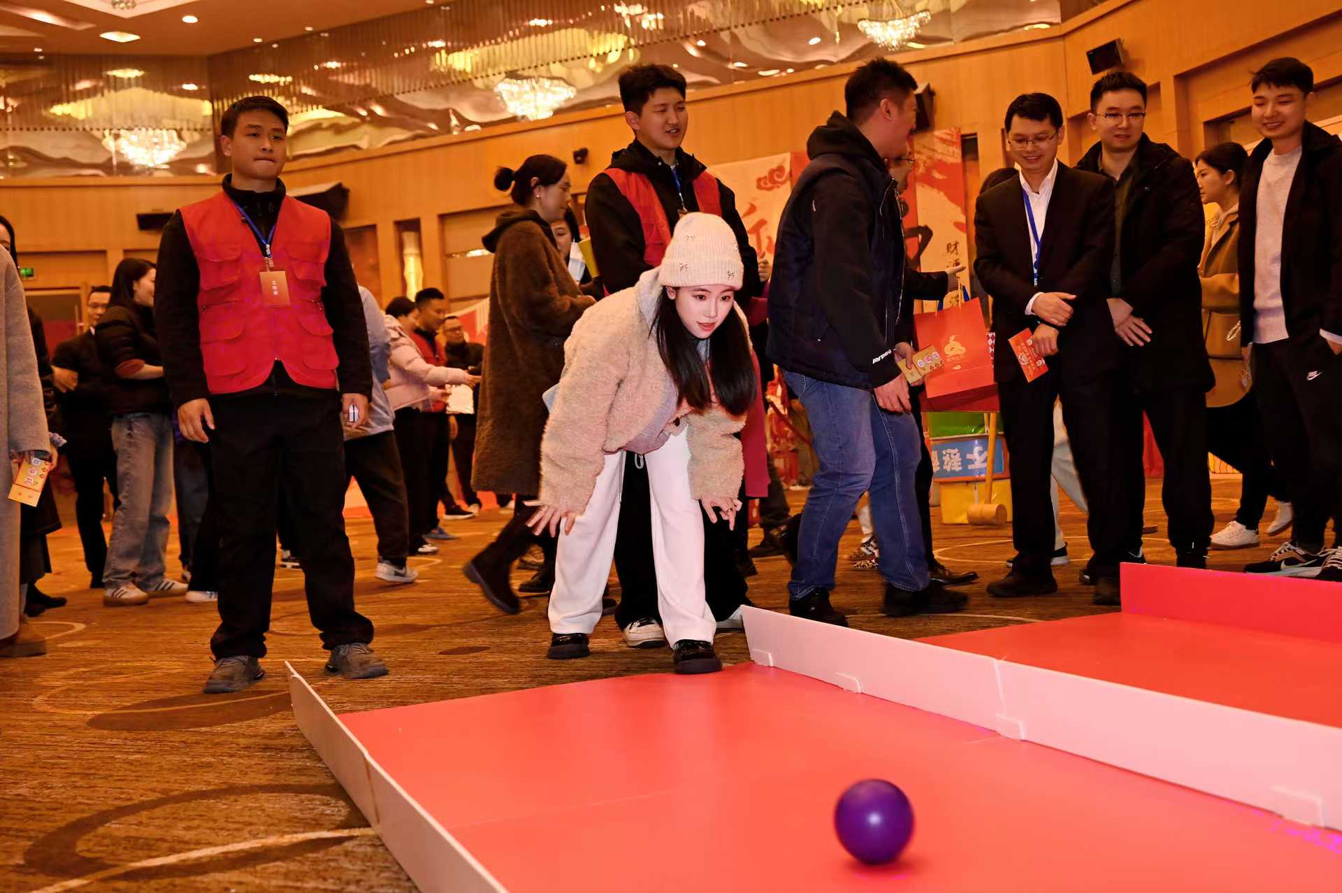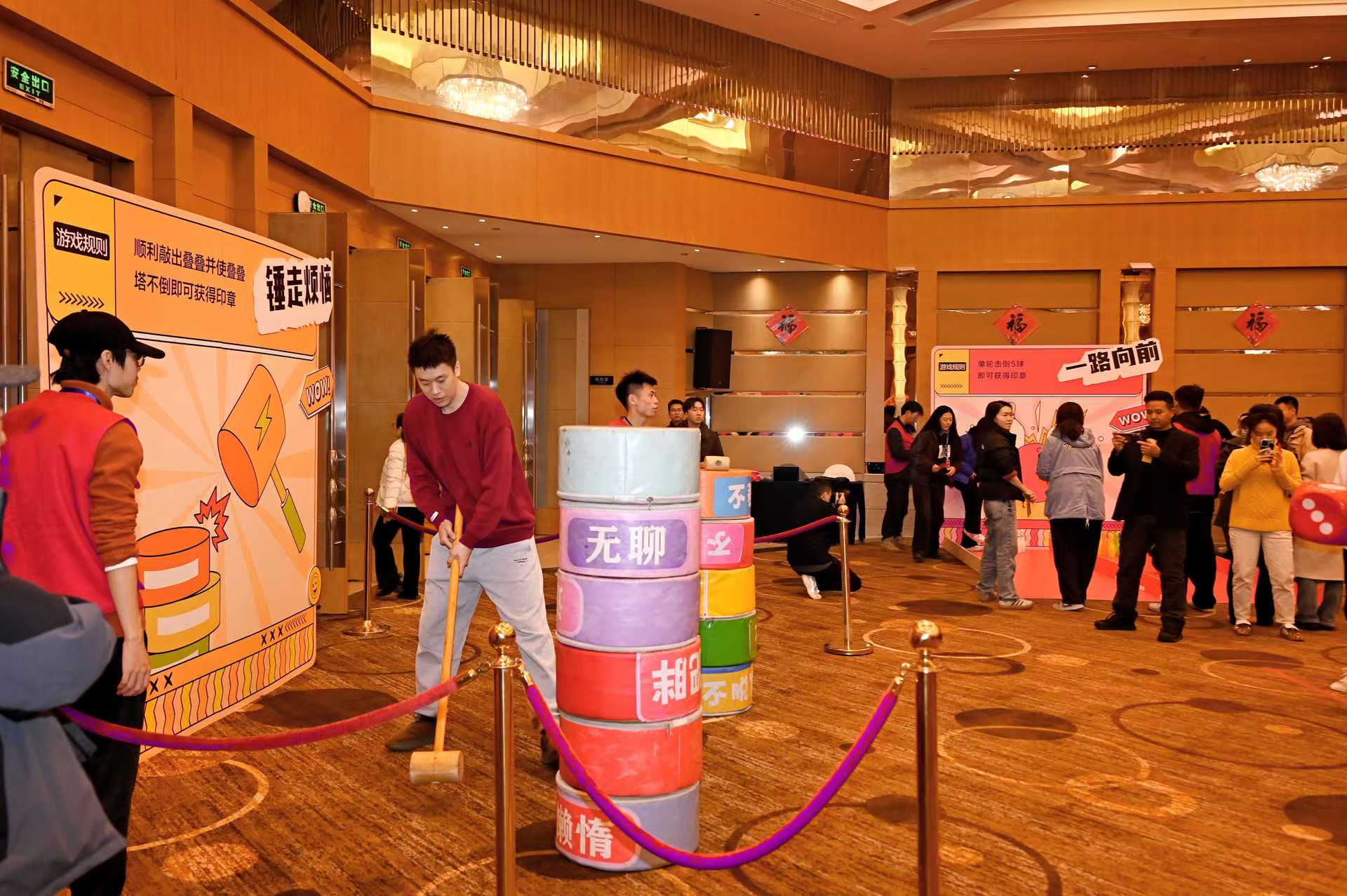 一路向前區(qū),職工們輪流上陣,用力擲出保齡球,體驗(yàn)運(yùn)動(dòng)的樂趣與激情;錘走煩惱區(qū),職工們通過敲擊“煩惱圈”,釋放壓力,享受智慧與技巧的碰撞 ;蛇舞新春區(qū),參賽者屏息凝神,用盡全力推動(dòng)小球,看它在賽道上蜿蜒;拼出未來區(qū),只見每位職工選手抱著不同顏色和形狀的“方塊”,構(gòu)建圖案并迅速完成拼裝。