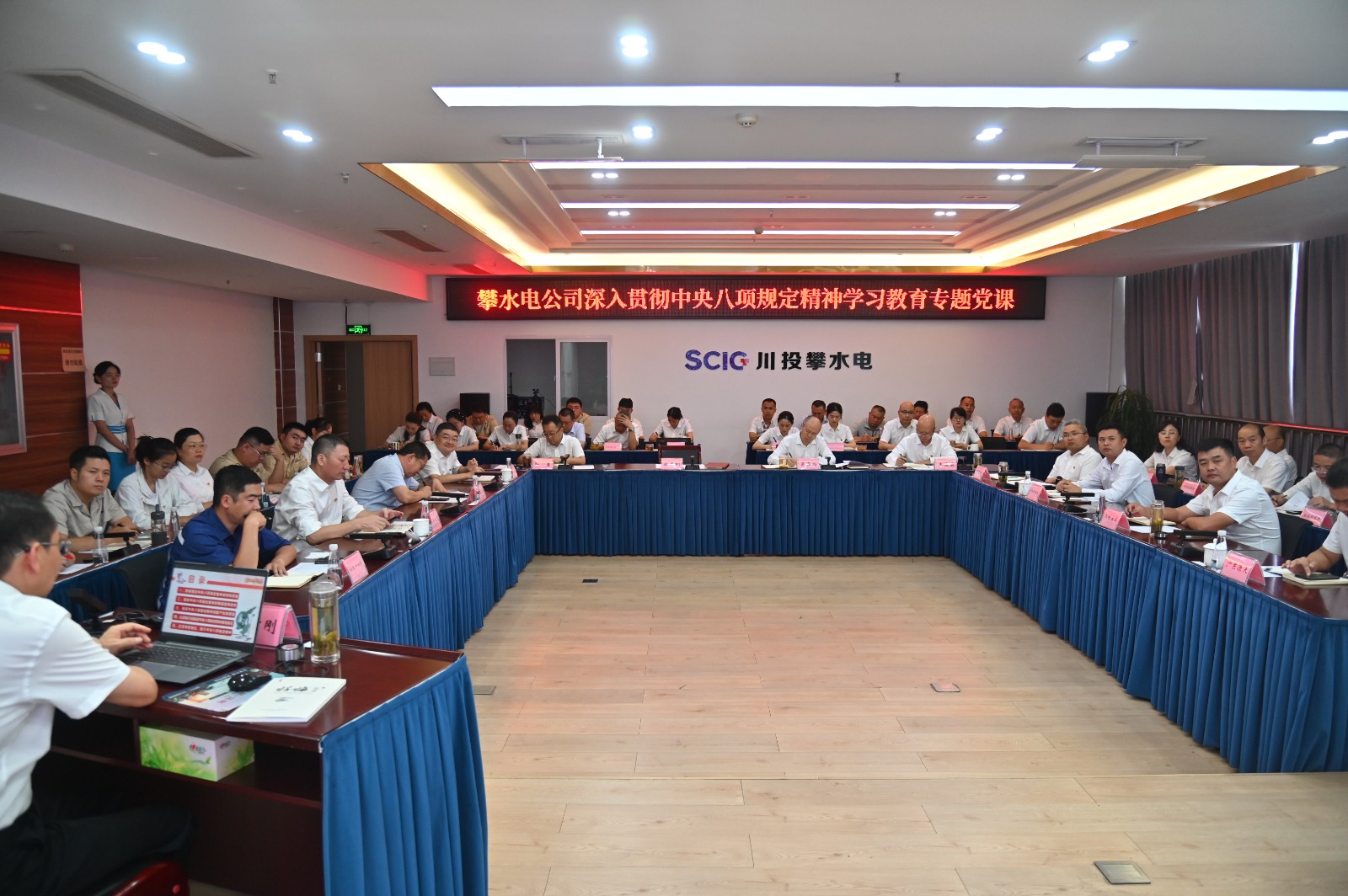 為深入貫徹中央八項(xiàng)規(guī)定精神學(xué)習(xí)教育,持續(xù)鞏固作風(fēng)建設(shè)成果,推進(jìn)全面從嚴(yán)治黨向縱深發(fā)展,7月1日,在黨的104歲生日之際,川投能源副總經(jīng)理、攀水電公司黨總支書記、董事長(zhǎng)徐孝剛講授了以“扎實(shí)開展深入貫徹中央八項(xiàng)規(guī)定精神學(xué)習(xí)教育,為國(guó)企高質(zhì)量發(fā)展提供堅(jiān)強(qiáng)紀(jì)律作風(fēng)保障”為題的專題黨課,公司全體黨員、職工,主要參建單位負(fù)責(zé)人及黨員代表共計(jì)50余人參加。