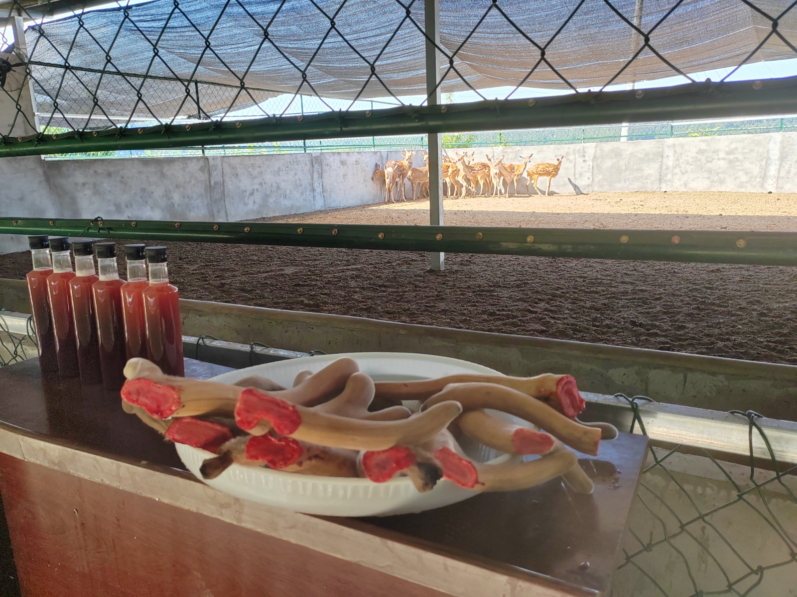 當(dāng)天上午,插旗山村梅花鹿養(yǎng)殖基地圍滿了前來的村民,在技術(shù)人員的專業(yè)指導(dǎo)下,飼養(yǎng)員們規(guī)范操作,伴隨著鹿茸鋸清脆的“咔嚓”聲,一對對形如珊瑚、色澤鮮亮的鹿茸應(yīng)聲而落,順利完成了首批6只梅花鹿的鹿茸收割。
