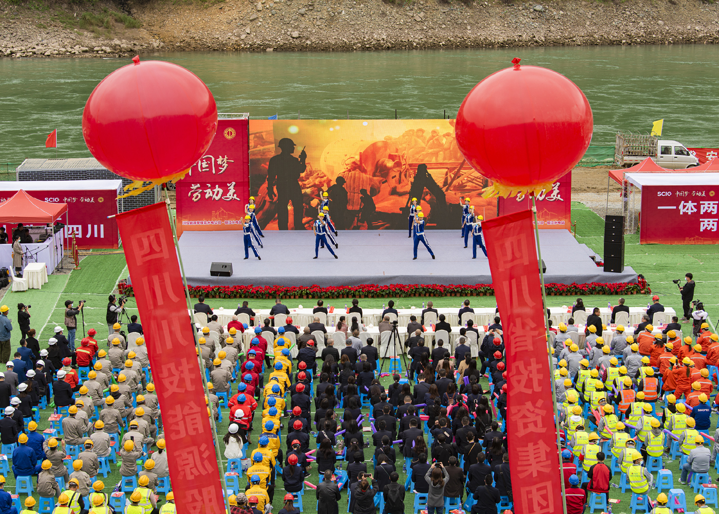 演出開始前,播放了川投能源宣傳片、攀枝花市東區(qū)宣傳片。鄧凱代表川投集團致辭,對銀江水電站如火如荼的工程建設(shè)進程表示欣慰。他指出,自銀江水電站建設(shè)以來,在各級政府和工會的關(guān)心支持下,銀江建設(shè)者秉承工匠精神,按照“開工不停工”的總體要求,逢山開路、遇水架橋、攻堅克難、銳意進取,取得了令人矚目的建設(shè)成果。川投集團站在實現(xiàn)“兩個一百年”奮斗目標的歷史交匯點上,正式展開了對標世界一流的管理提升行動,努力打造具有國際影響力的一流國有資本投資集團,是貫徹落實黨的十九屆五中全會重要精神的最新部署,是開啟全面建設(shè)社會主義現(xiàn)代化國家新征程的時代行動,是凝心聚力勠力實現(xiàn)“銀江夢、川投夢、中國夢”的沖鋒號角!最后鄧凱代表川投集團對各位領(lǐng)導(dǎo)、各位來賓和各位藝術(shù)家的到來表示熱烈的歡迎,對一直以來關(guān)心支持川投集團改革發(fā)展和銀江水電站建設(shè)的各級政府、工會表示衷心的感謝!