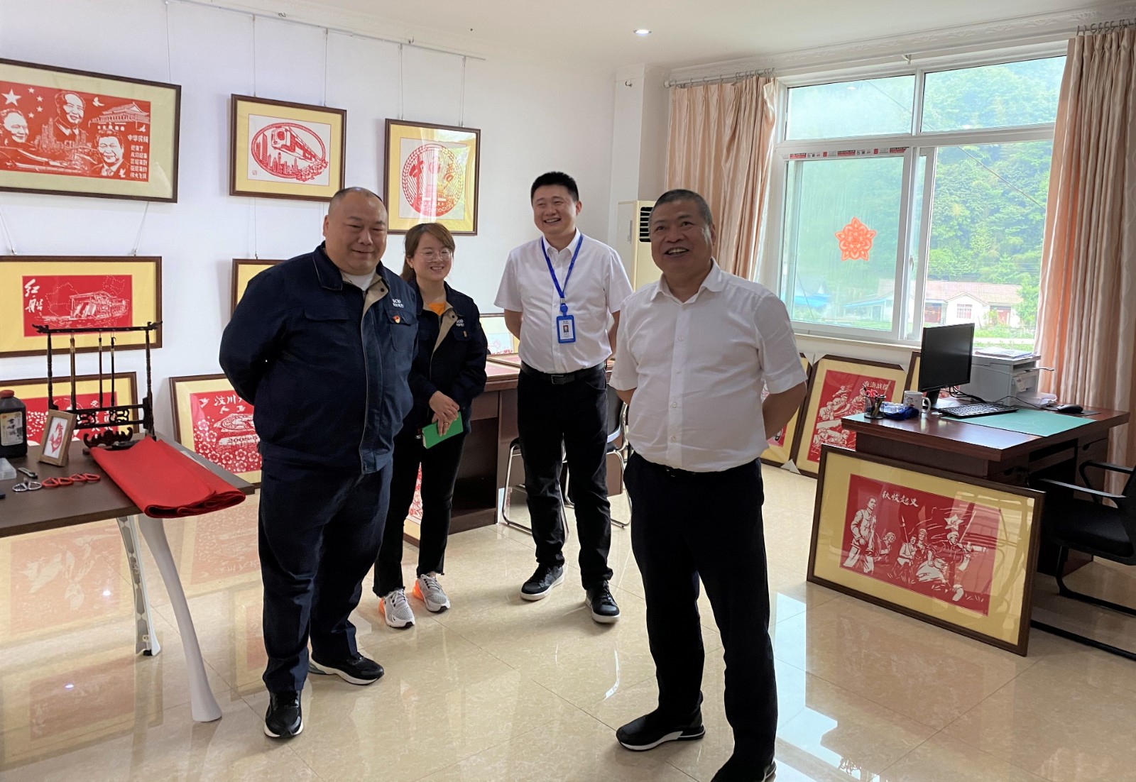 在“小莊工作室”,楊洪一行現(xiàn)場查看了剪紙作品創(chuàng)作進(jìn)展情況,對公司領(lǐng)導(dǎo)班子及剪紙展相關(guān)工作人員的共同努力表示了充分肯定,對莊叢燦及其團(tuán)隊(duì)表示了親切的慰問,并要求公司在后續(xù)工作中按集團(tuán)公司指示,高位謀劃、高效推動(dòng)、高質(zhì)量完成好剪紙展籌備工作。