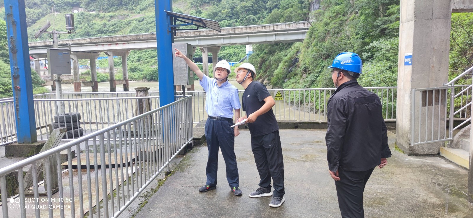 楊平一行先后前往腳基坪電站大壩及發(fā)電廠區(qū)實(shí)地檢查指導(dǎo),檢查組對(duì)大壩水庫調(diào)度情況、應(yīng)急電源保障、防汛物資儲(chǔ)備、閘門啟閉設(shè)備與電站的壓力容器特種設(shè)備、發(fā)電機(jī)主設(shè)備及GIS設(shè)備進(jìn)行了專項(xiàng)檢查。