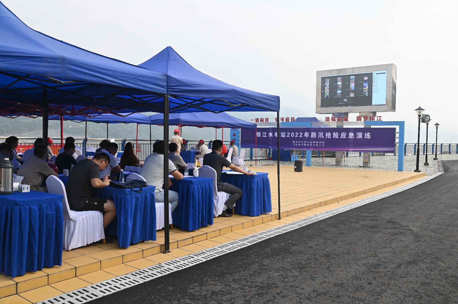公司全體在攀領(lǐng)導(dǎo)和員工參加了本次演練,市發(fā)展改革委、市應(yīng)急管理局、市自然資源和規(guī)劃局東區(qū)分局、東區(qū)防汛抗旱指揮部、東區(qū)發(fā)改局、東區(qū)應(yīng)急管理局、仁和區(qū)防汛抗旱事務(wù)中心及銀江鎮(zhèn)等單位相關(guān)負(fù)責(zé)同志到場(chǎng)觀摩指導(dǎo)。長江設(shè)計(jì)公司、貴陽院監(jiān)理部、二灘建設(shè)監(jiān)理部、水電五局項(xiàng)目部、水電七局項(xiàng)目部、水電十局項(xiàng)目部、四川路橋項(xiàng)目部、水情測(cè)報(bào)中心、安全監(jiān)測(cè)標(biāo)等150余人參加了本次演練。