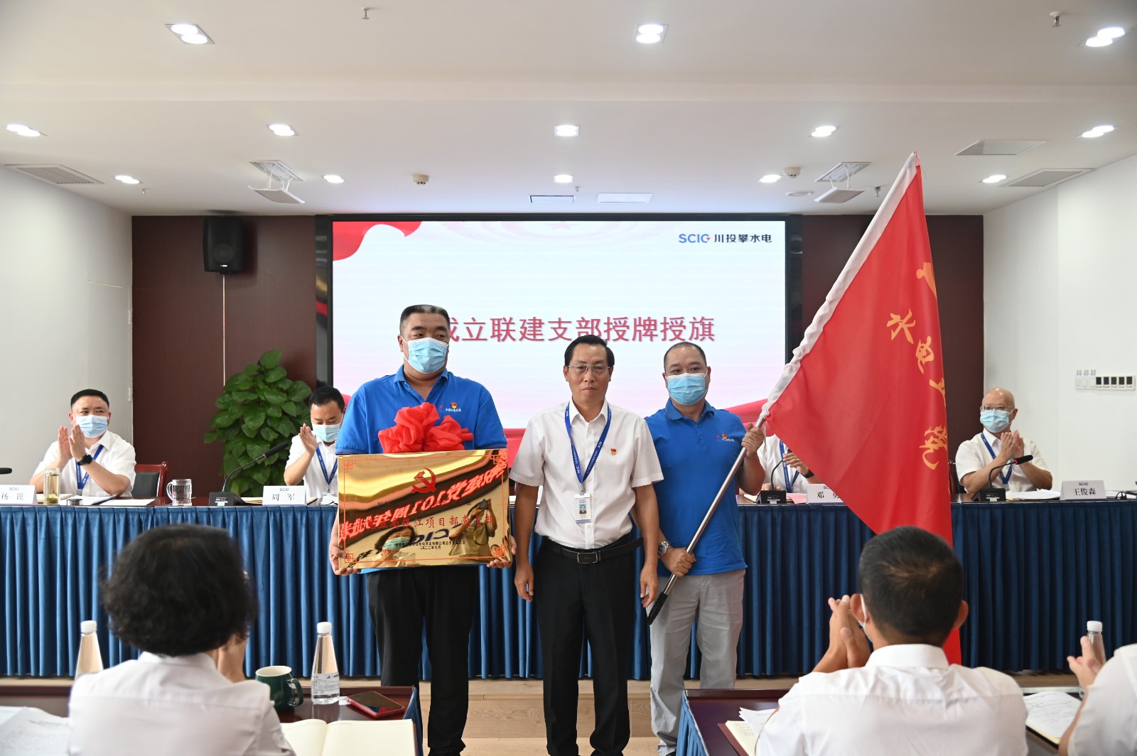 大會(huì)在莊嚴(yán)的國(guó)歌聲中拉開(kāi)帷幕,攀新能源公司總經(jīng)理、攀水電公司副總經(jīng)理周軍和財(cái)務(wù)總監(jiān)王俊森分別傳達(dá)了川投集團(tuán)、川投能源“七一”表彰大會(huì)精神。隨著徐孝剛為新成立聯(lián)建支部水電五局銀江項(xiàng)目部黨支部進(jìn)行了授牌和授旗;表彰了2021年度“兩優(yōu)一先”先進(jìn)集體和個(gè)人,為先進(jìn)集體和個(gè)人頒發(fā)了獎(jiǎng)牌、證書(shū),受表彰的先進(jìn)集體和個(gè)人代表分別作了交流發(fā)言;黨群工作部田德萍代表新入職黨員作了表態(tài)發(fā)言,她談到:有幸加入川投大家庭,成為攀水電公司青年黨員隊(duì)伍的一員,將充分發(fā)揮攀枝花三線建設(shè)精神,發(fā)揚(yáng)攀水電銀江精神,與其他新入職員工一道投身于銀江水電站建設(shè)和公司高質(zhì)量發(fā)展中去。