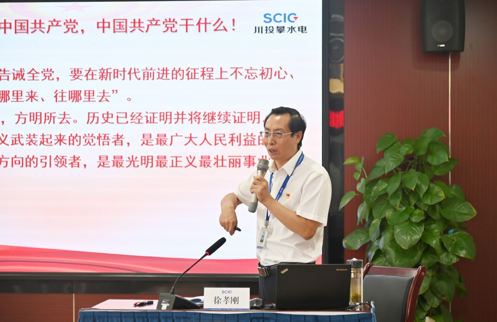 按照川投集團(tuán)黨委和川投能源黨委總體部署,為深入學(xué)習(xí)貫徹習(xí)近平總書(shū)記來(lái)川視察重要指示精神和四川省第十二次黨代會(huì)精神,傳達(dá)學(xué)習(xí)川投集團(tuán)和川投能源慶祝“七一”表彰大會(huì)精神,7月1日下午,攀水電公司組織召開(kāi)慶祝建黨101周年先進(jìn)表彰大會(huì)暨“書(shū)記講堂”,由川投能源副總經(jīng)理、攀水電公司黨總支書(shū)記、董事長(zhǎng)、攀新能源公司董事長(zhǎng)徐孝剛講授專題黨課,宣傳習(xí)近平總書(shū)記來(lái)川視察重要指示精神和省第十二次黨代會(huì)精神。會(huì)議由黨總支委員、董事會(huì)秘書(shū)、工會(huì)主席鄧勇主持,攀水電公司全體黨員、非黨干部,參建單位負(fù)責(zé)人、聯(lián)建支部支委及“兩優(yōu)一先”表彰對(duì)象共計(jì)45人參會(huì)。