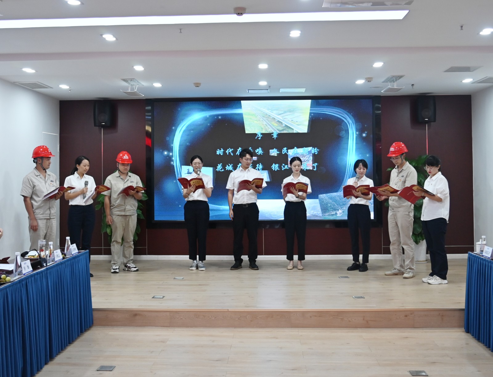 會議在公司青年職工精心準(zhǔn)備的詩歌朗誦“銀江組歌”中拉開帷幕,“時代在呼喚,人民在期盼?;ǔ窃诘却?,銀江我來了……”公司各部門員工代表以朗誦的方式聲情并茂的講述了銀江水電站自2019年7月開工建設(shè)三年歷程,贏得了參會人員的陣陣掌聲。