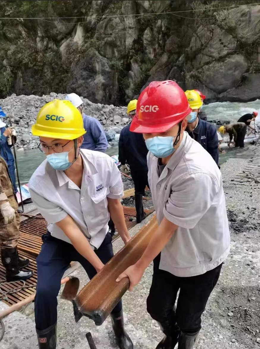 受交通管制,外來車輛不能通行,公司積極同彭州市水務(wù)和交通等部門協(xié)調(diào)聯(lián)系,火速?gòu)?0公里外調(diào)配挖掘機(jī)等清淤器械馳援現(xiàn)場(chǎng),確保搶險(xiǎn)工作有序推進(jìn)。沙金車間員工火速集結(jié),穿上筒靴、拿起鋤頭鐵鏟緊急投入搶險(xiǎn)工作,勘查現(xiàn)場(chǎng)、疏通清淤、修復(fù)鋼結(jié)構(gòu)。為了搶時(shí)間,大家連續(xù)奮戰(zhàn),就連吃飯也是輪流半蹲在河道邊草草解決,太忙時(shí)甚至來不及吃上一口熱飯。后勤部門多線配合,加大后勤保障力度,及時(shí)提供所需物資。險(xiǎn)情當(dāng)前,刻不容緩,公司生產(chǎn)現(xiàn)場(chǎng)閉環(huán)管理的各部門以實(shí)際行動(dòng)在搶險(xiǎn)第一線擔(dān)當(dāng)作為。