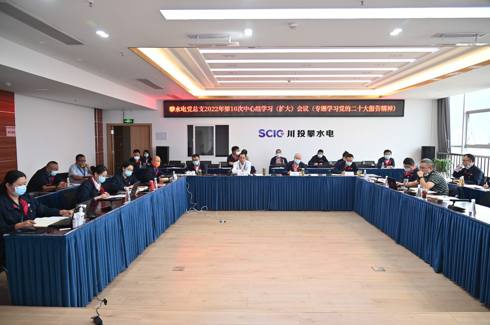 10月22日上午,在黨的二十大勝利閉幕之際,攀水電公司黨總支在2620會(huì)議室召開了2022年第10次中心組(擴(kuò)大)學(xué)習(xí)會(huì)議,專題學(xué)習(xí)習(xí)近平總書記在中國(guó)共產(chǎn)黨第二十次全國(guó)代表大會(huì)上的報(bào)告。會(huì)議由川投能源副總經(jīng)理、攀水電公司黨總支書記、董事長(zhǎng)、攀新能源公司董事長(zhǎng)徐孝剛主持,公司黨總支中心組成員、聯(lián)建支部書記、其他黨員、統(tǒng)戰(zhàn)對(duì)象、入黨積極分子共40余人參加學(xué)習(xí)。