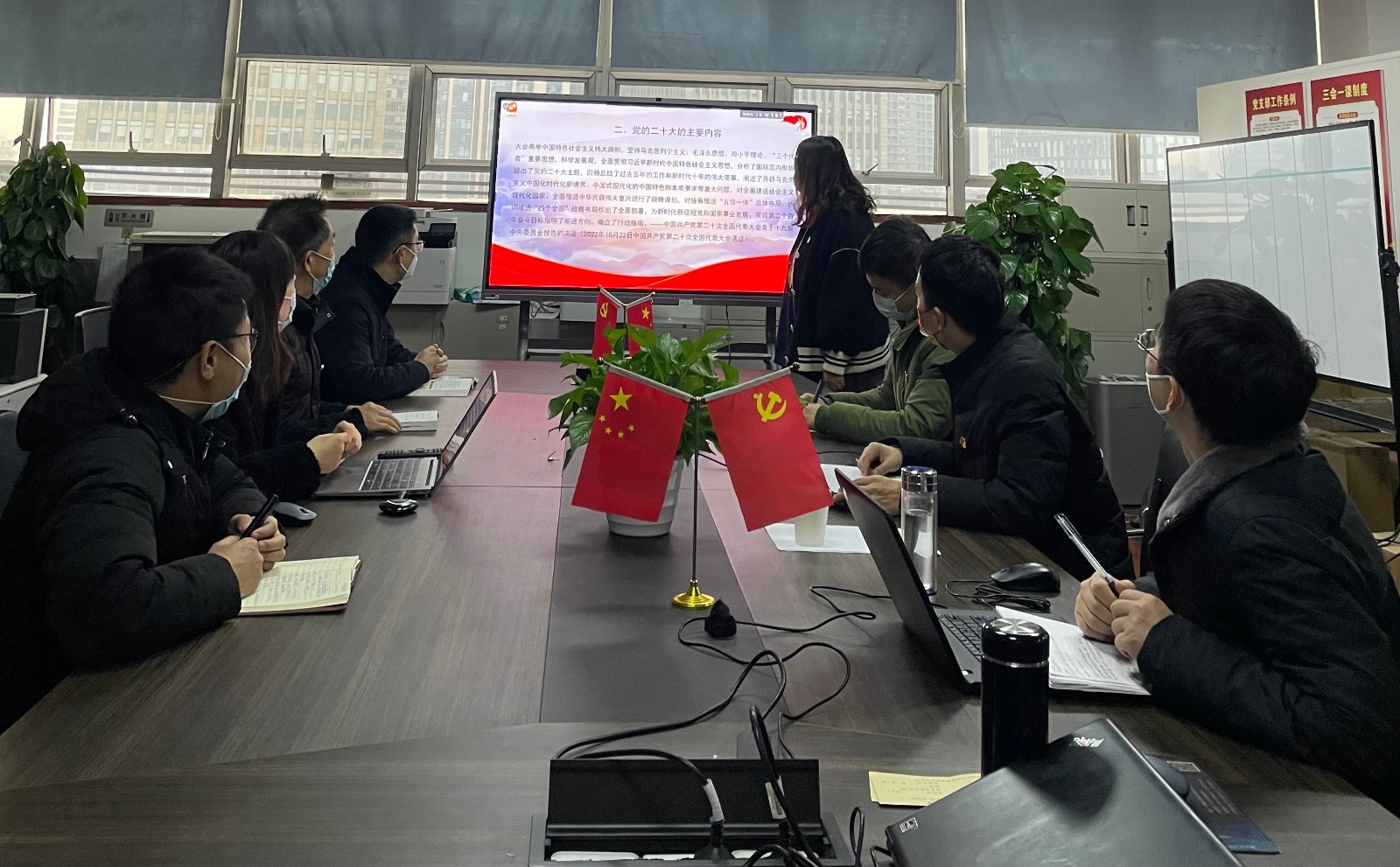 宣講會上,第三黨支部書記朱婷從黨的二十大召開的時代背景、黨的二十大內(nèi)容、黨的二十大重要意義、如何貫徹落實好黨的二十大精神等四個方面開展了全面系統(tǒng)宣講。她指出,黨的二十大是在我國邁上全面建設社會主義現(xiàn)代化國家新征程、向第二個百年奮斗目標進軍的關鍵時刻召開的一次十分重要的大會。她強調(diào),支部全體黨員要深入學習領會黨的二十大精神,吃透原文思想,領會精神實質(zhì),堅持學深悟透,把學習宣傳貫徹黨的二十大精神與做好本職工作緊密結合起來,把學習宣傳貫徹黨的二十大精神統(tǒng)一到真抓實干、創(chuàng)新爭先上,立足崗位多干實事,擔當作為勇當先鋒,團結帶領全體員工高質(zhì)量完成各項目標任務。