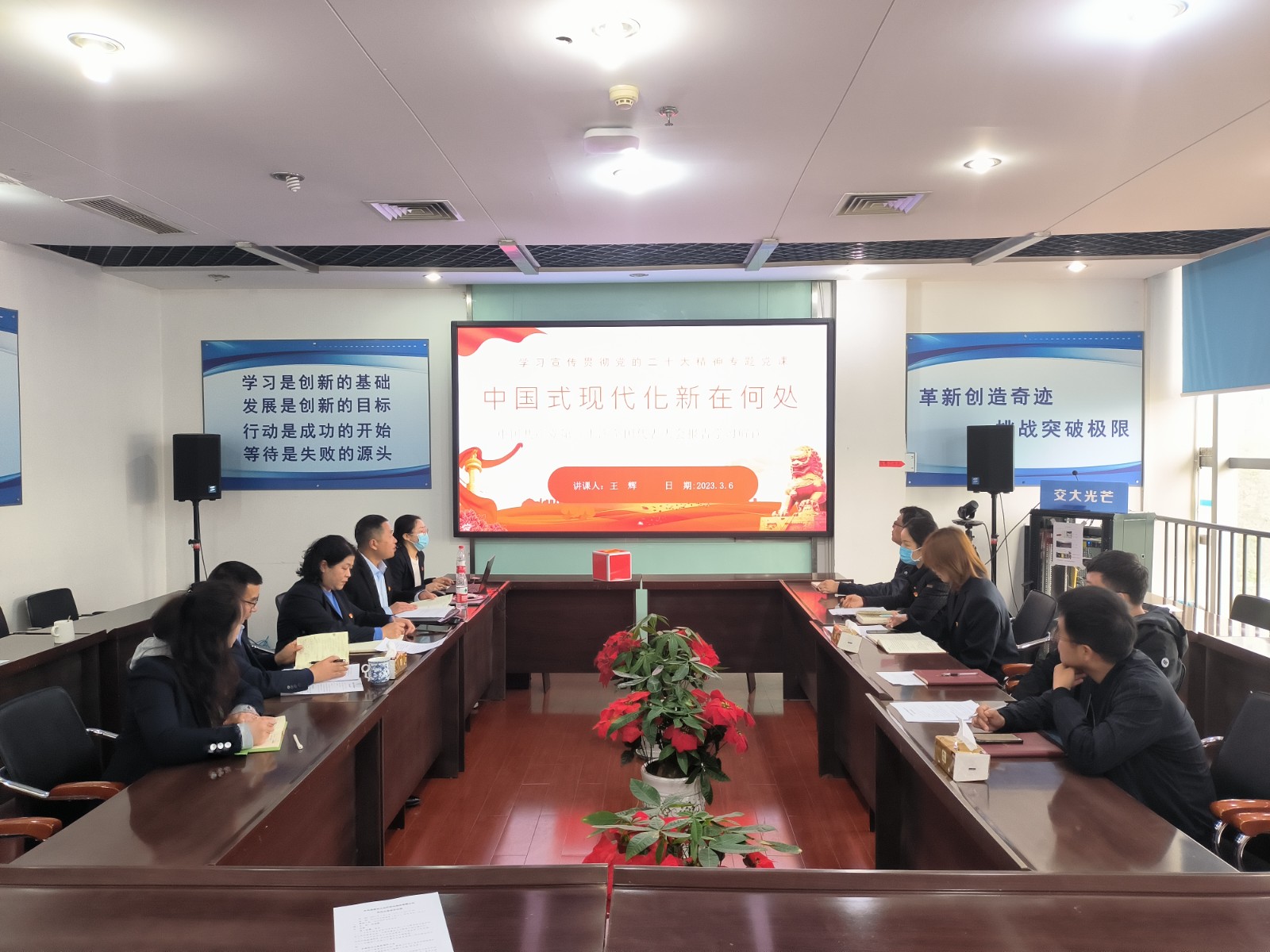 3月6日,為全面深入學(xué)習(xí)領(lǐng)會貫徹落實黨的二十大精神,打牢開好組織生活會的思想基礎(chǔ),交大光芒第一黨支部召開黨員大會,集中學(xué)習(xí)習(xí)近平同志在學(xué)習(xí)貫徹黨的二十大精神研討班開班式上發(fā)表重要講話、中國共產(chǎn)黨第二十屆中央委員會第二次全體會議公報。第一支部書記、公司副總工程師兼研發(fā)中心副總經(jīng)理王輝以《中國式現(xiàn)代化新在何處》為題進(jìn)行專題黨課。