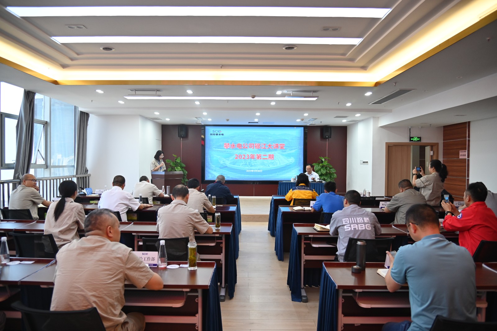 在銀江水電站大壩基礎(chǔ)固結(jié)灌漿全面推進(jìn),建基面即將全部覆蓋之際,公司邀請長江地球物理探測(武漢)有限公司副總工程師、銀江水電站物探中心項(xiàng)目經(jīng)理、教授級高級工程師蔡加興,在銀江大講堂上給公司各部門及各參建單位,作了題為《物探檢測方法技術(shù)與應(yīng)用》的技術(shù)交流課,公司領(lǐng)導(dǎo)、各部門及各參建單位相關(guān)人員共30余人參加。