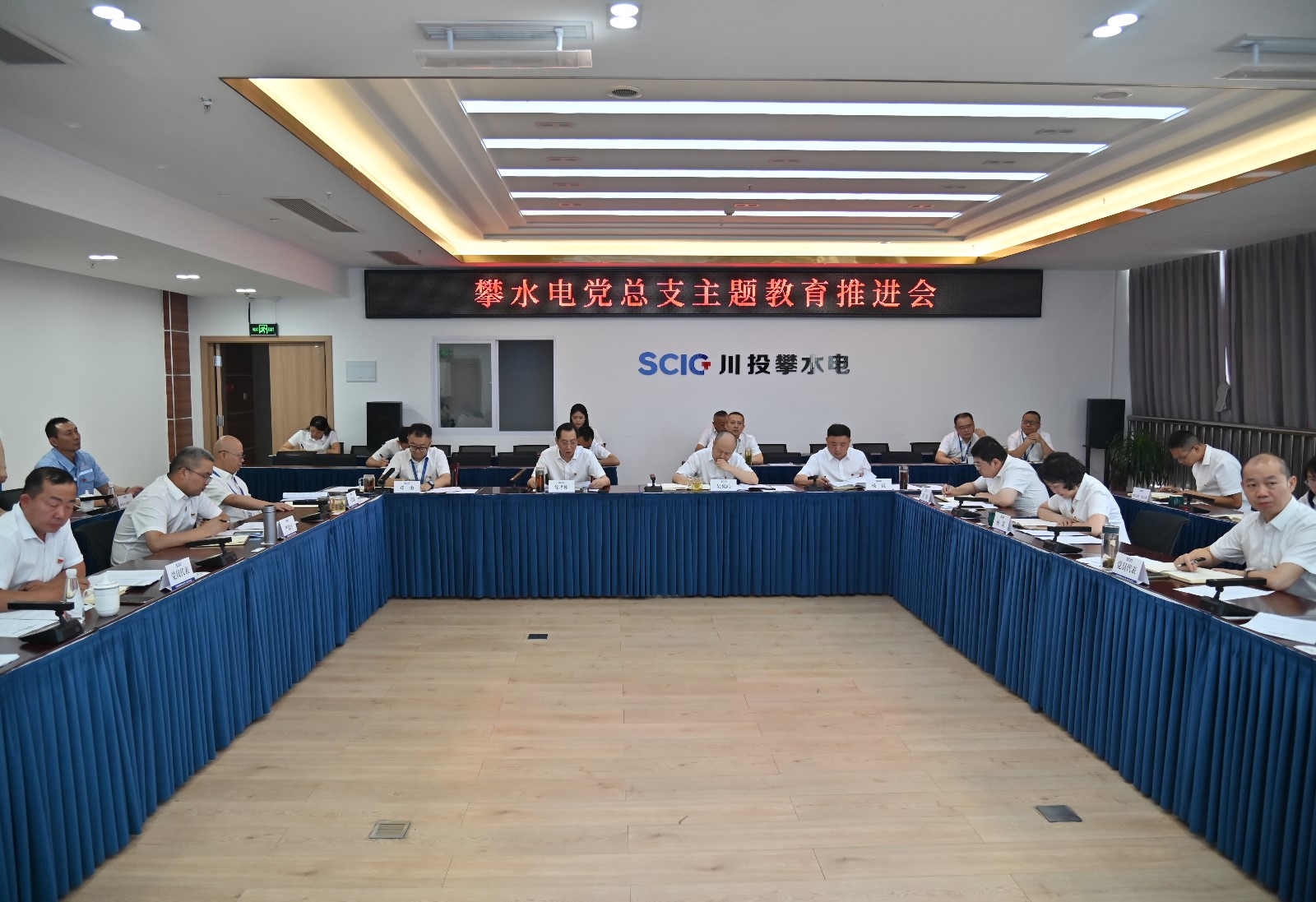 為落實(shí)川投集團(tuán)黨委和川投能源黨委對(duì)主題教育、基層黨建工作的部署要求,5月16日下午,攀水電黨總支組織召開主題教育推進(jìn)會(huì)暨2022年度黨支部書記抓黨建工作述職評(píng)議考核會(huì),攀水電公司、攀新能源公司領(lǐng)導(dǎo)班子成員、各部門負(fù)責(zé)人、黨支部書記、支部委員、黨員代表共計(jì)25人參加。會(huì)議由黨總支副書記、董事會(huì)秘書、工會(huì)主席鄧勇主持。