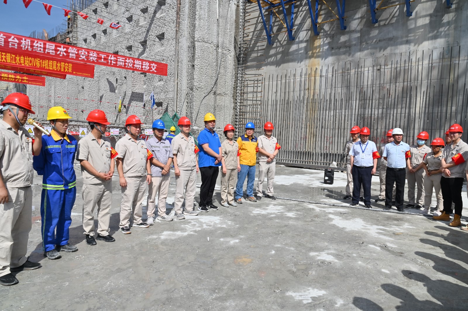 為全力保障2023年各項(xiàng)進(jìn)度目標(biāo)順利實(shí)現(xiàn),公司團(tuán)結(jié)帶領(lǐng)各參建單位及哈電廠家群策群力、攻堅(jiān)克難,認(rèn)真落實(shí)各項(xiàng)工作。成立工作推進(jìn)指揮部和六個工作小組,由公司班子成員牽頭,公司相關(guān)部門、各聯(lián)建支部、各參建單位人員參加,緊盯責(zé)任分區(qū),狠抓工作落實(shí),確保各部位施工能順利推進(jìn),確保物資設(shè)備能按時保供。認(rèn)真梳理工程重難點(diǎn),優(yōu)化施工工藝,每日召開工地協(xié)調(diào)會,將工作任務(wù)落實(shí)到每日計(jì)劃中。堅(jiān)持現(xiàn)場聯(lián)合辦公,從施工組織、人員投入、機(jī)具配置、施工方案等方面著手,分析存在的問題并及時協(xié)調(diào)解決,施工進(jìn)度處于可控狀態(tài)。加強(qiáng)現(xiàn)場管理,每日深入現(xiàn)場檢查,第一時間掌握安全、質(zhì)量等方面情況,發(fā)現(xiàn)問題及時督促整改,做到“重安全、保質(zhì)量、抓進(jìn)度”三管齊下。同時,合理調(diào)整作業(yè)時間,當(dāng)前攀枝花天氣炎熱,白天室外溫度高達(dá)三十多度,施工作業(yè)人員極易中暑,公司將作業(yè)時間調(diào)整為7:00-11:30、15:00-20:00,并做好“送清涼”活動,保障全員以最佳狀態(tài)作業(yè)施工,推進(jìn)工程建設(shè)。