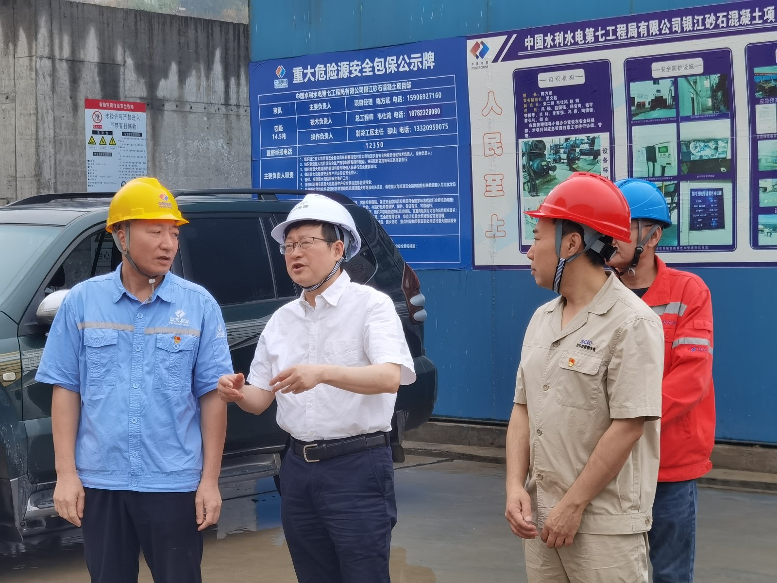 楊平一行深入銀江水電站施工現(xiàn)場,查看安全風險管控情況,了解工程建設及安全生產(chǎn)情況,結合安全生產(chǎn)強化年、重大事故隱患專項排查整治、防汛減災等工作,對現(xiàn)場液氨制冷系統(tǒng)等重點部位、重點設備、施工作業(yè)面的安全措施落實情況開展督導檢查。