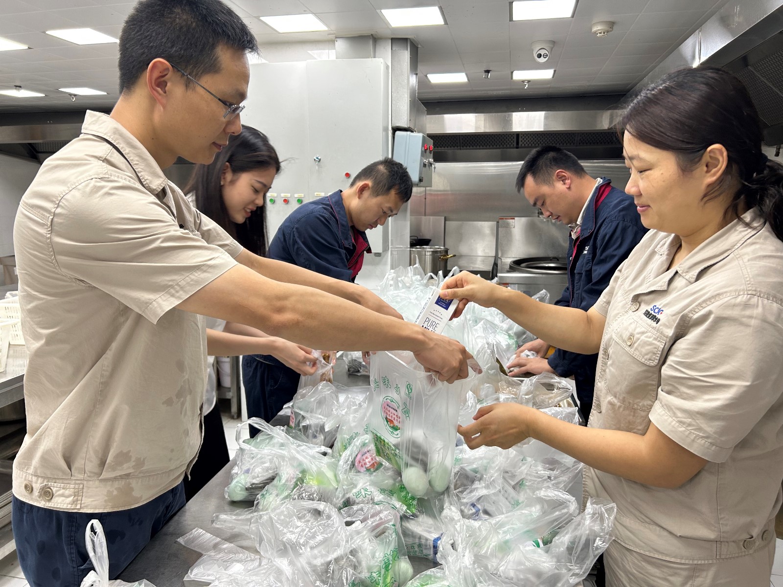 支部黨員、志愿者們放棄了難得的節(jié)日假期,下午就在職工食堂忙碌了起來,鹵雞腿,蒸粽子,煮鹽蛋,采用流水線工作方式,把熱乎乎的雞腿、粽子、鹽蛋、牛奶等提前進(jìn)行分裝,方便工友們?cè)诠さ厥秤谩?