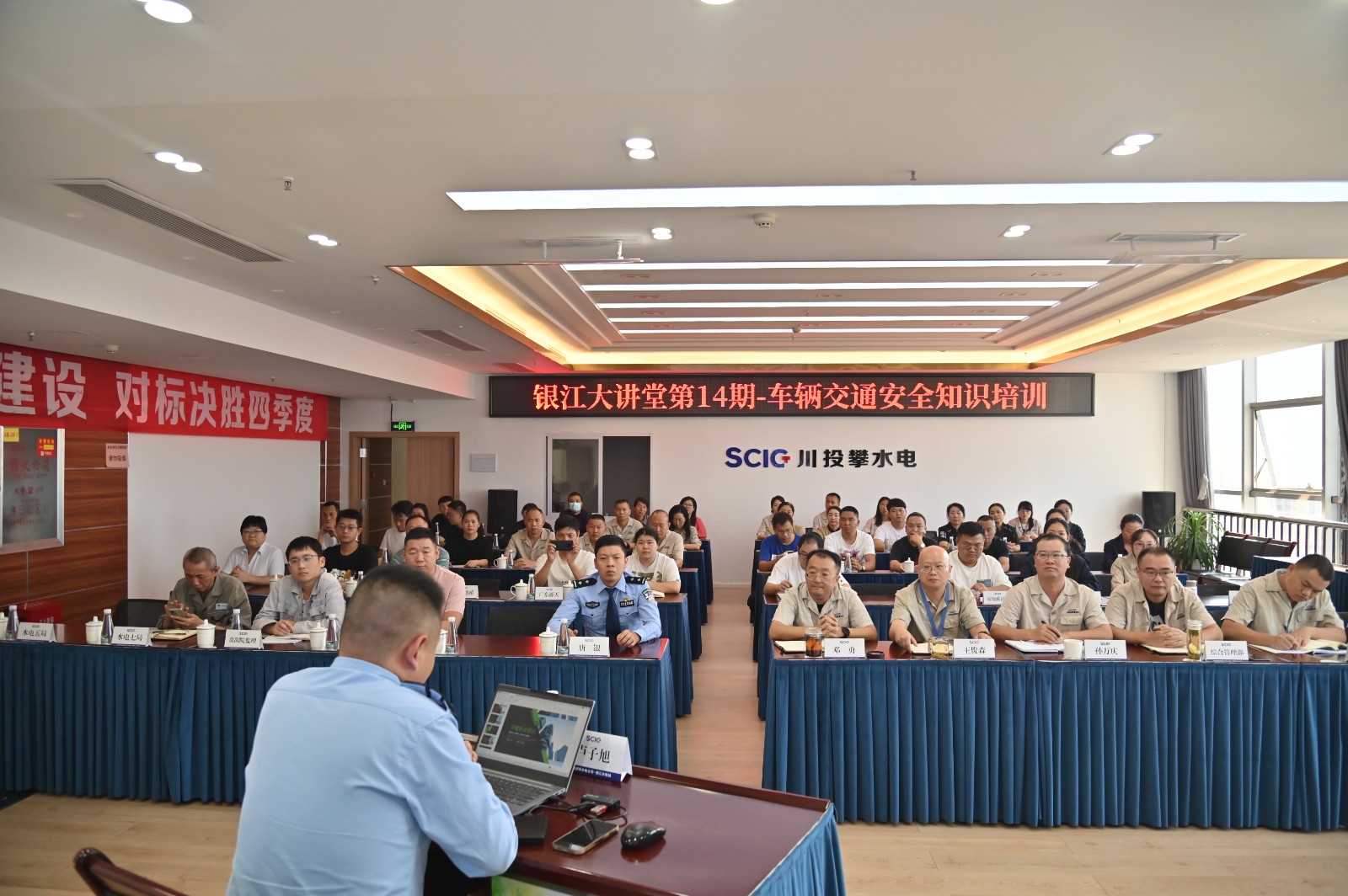 為全面做好銀江水電站安全生產(chǎn)各項(xiàng)工作,強(qiáng)化各單位安全生產(chǎn)工作主體責(zé)任意識(shí),切實(shí)做好車輛交通安全管理工作,10月23日,攀水電公司舉辦2023年第14期“銀江大講堂”——車輛交通安全專題培訓(xùn),邀請(qǐng)攀枝花市交警支隊(duì)三大隊(duì)事故民警唐銀、宣傳民警盧子旭主講,公司在攀領(lǐng)導(dǎo)、各部門(mén)員工、各參建單位有關(guān)管理人員及駕駛員共計(jì)50余人參加。