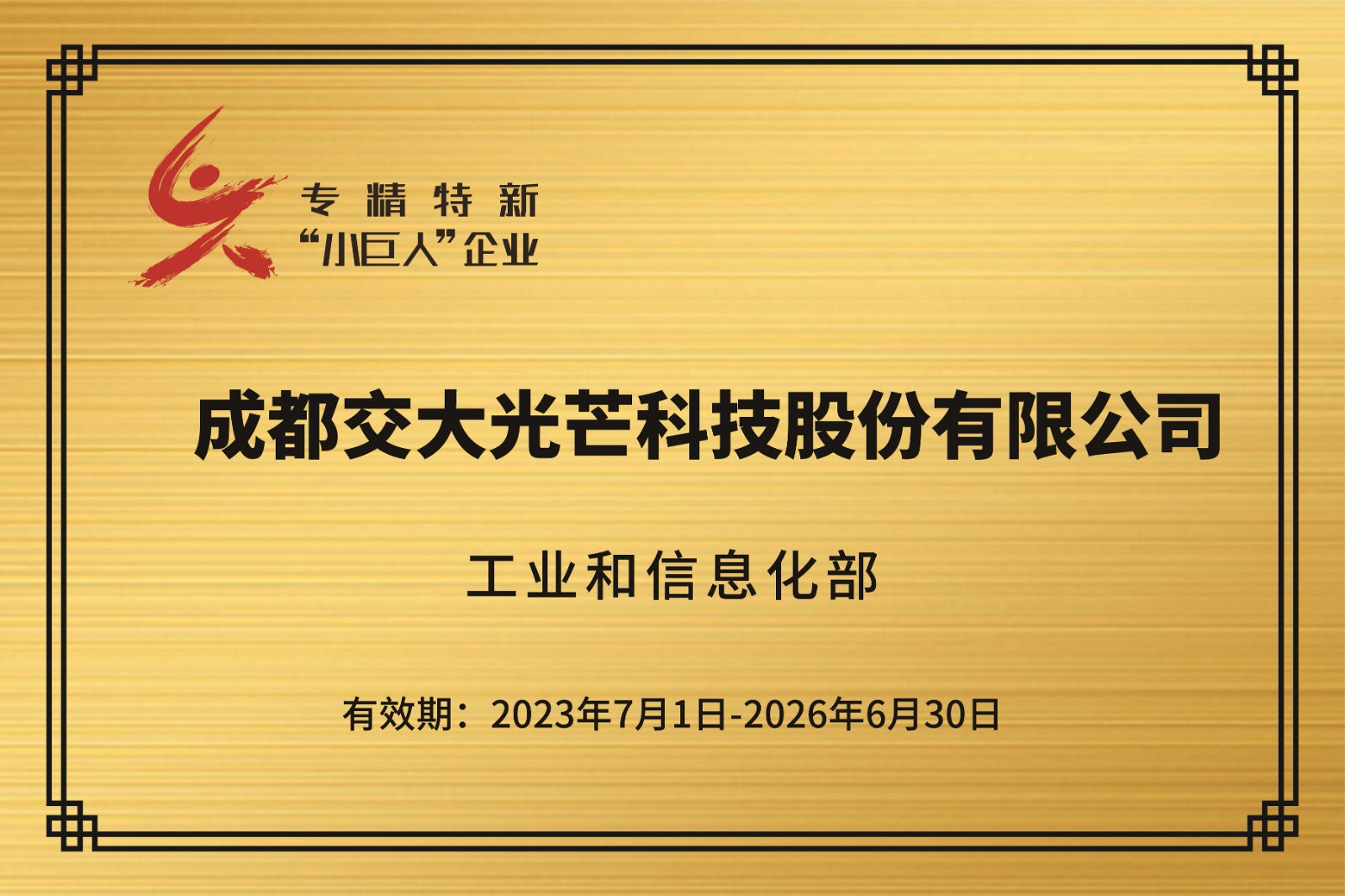 日前,國(guó)家工業(yè)和信息化部公布《關(guān)于第五批專精特新“小巨人”企業(yè)和通過(guò)復(fù)核的第二批專精特新“小巨人”企業(yè)名單的通告》,成都交大光芒科技股份有限公司被授予專精特新“小巨人”稱號(hào)。