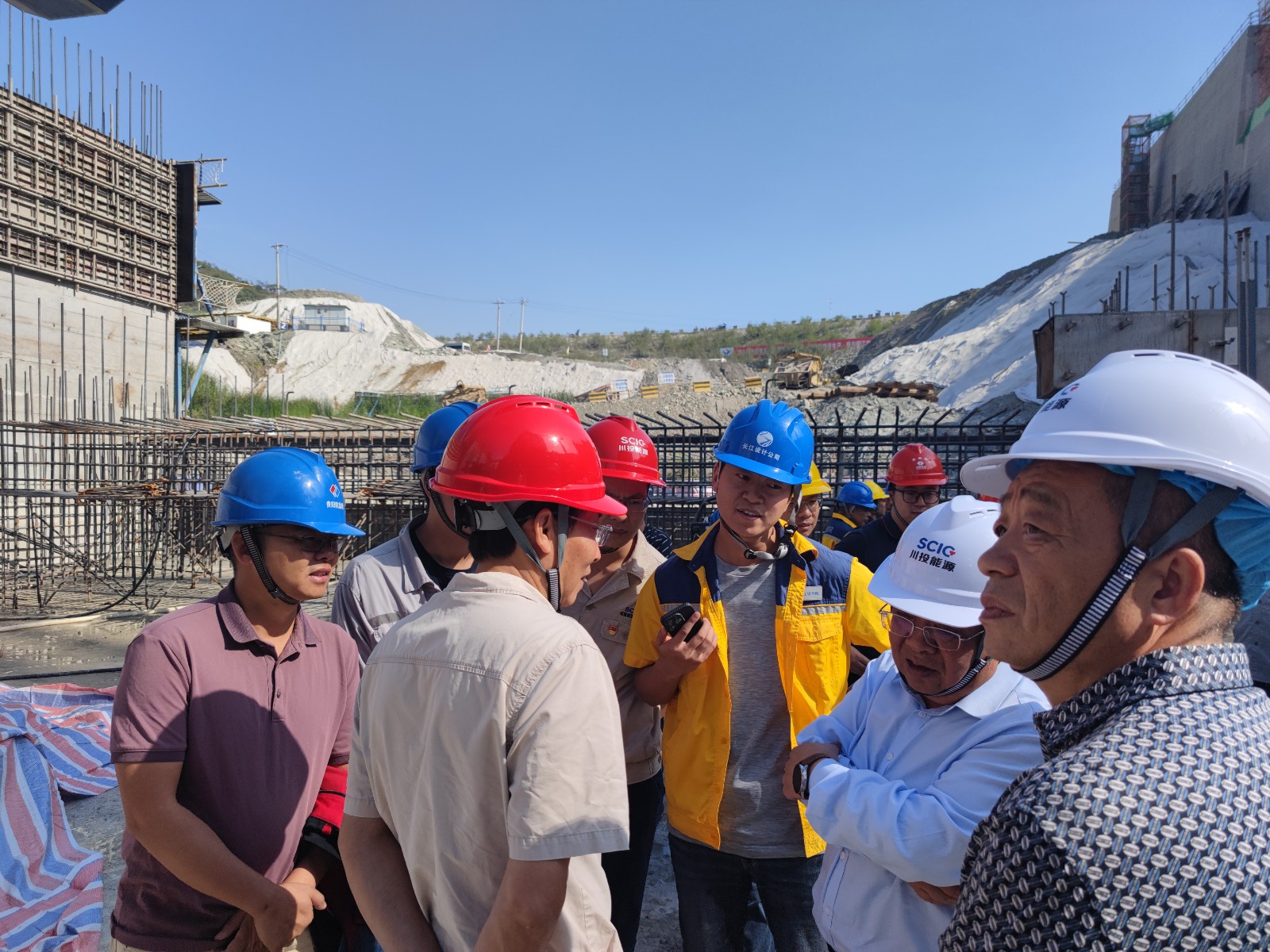 本次質(zhì)量監(jiān)督為隨機(jī)抽查質(zhì)量監(jiān)督,專家組于10月27日抵達(dá)現(xiàn)場(chǎng)后,立即安排質(zhì)量監(jiān)督工作。10月28日上午召開了見面會(huì),聽取了工程建設(shè)進(jìn)展情況匯報(bào),隨后在川投能源副總經(jīng)理、公司黨總支書記、董事長(zhǎng)徐孝剛,公司黨總支副書記、總經(jīng)理吳巍嶼及各參建單位主要負(fù)責(zé)人陪同下,專家組一行到施工現(xiàn)場(chǎng)進(jìn)行檢查,先后對(duì)消力池、廠房壩段、溢流壩段、安裝場(chǎng)、銀江大橋等施工部位以及水電五局鋼筋加工廠、廣東源天機(jī)電倉庫、砂混加工系統(tǒng)和現(xiàn)場(chǎng)試驗(yàn)室進(jìn)行了詳細(xì)檢查,并單獨(dú)抽出半天時(shí)間對(duì)龍洞灰?guī)r料場(chǎng)進(jìn)行現(xiàn)場(chǎng)踏勘,檢查了料源單位開采及生產(chǎn)情況。