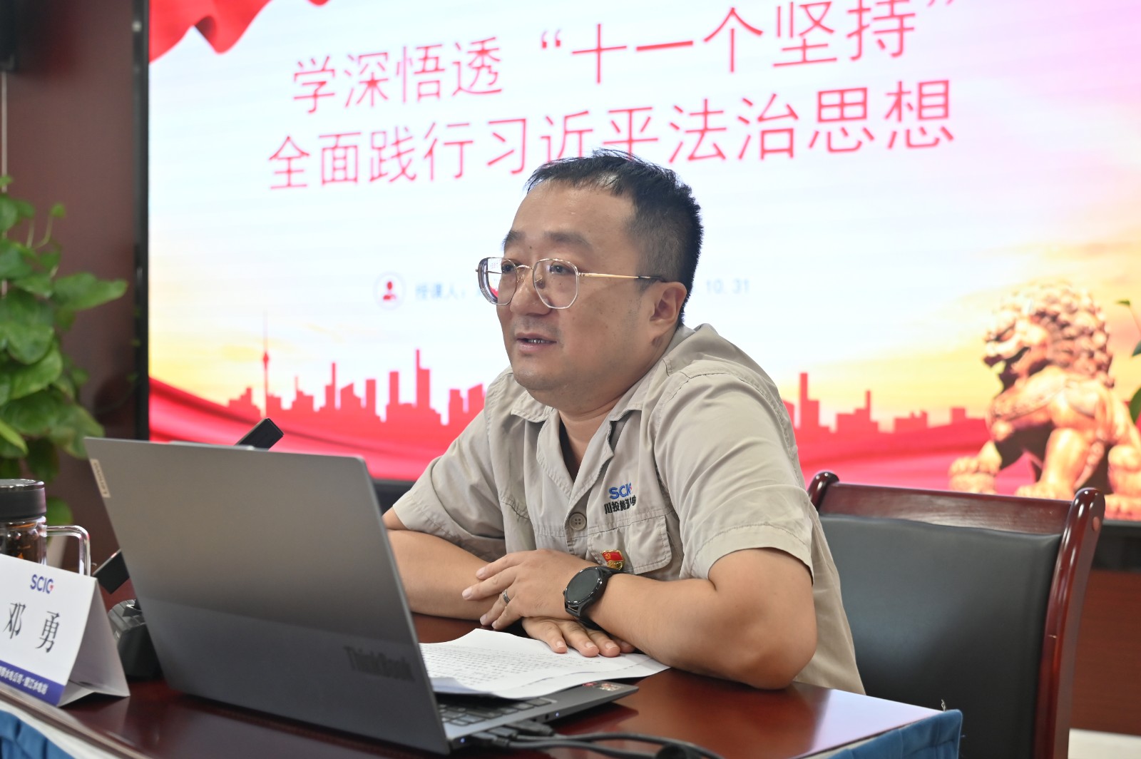 會(huì)上,公司黨總支副書(shū)記、董事會(huì)秘書(shū)、工會(huì)主席鄧勇以“學(xué)深悟透‘十一個(gè)堅(jiān)持’,全面踐行習(xí)近平法治思想”為題,從習(xí)近平法治思想的核心理念、總體部署、關(guān)鍵舉措、重要成果四個(gè)方面做了系統(tǒng)闡述,詳細(xì)解讀了學(xué)深悟透“十一個(gè)堅(jiān)持”的內(nèi)在邏輯和豐富內(nèi)涵,進(jìn)一步深化了公司員工對(duì)習(xí)近平法治思想的理解和認(rèn)識(shí)。