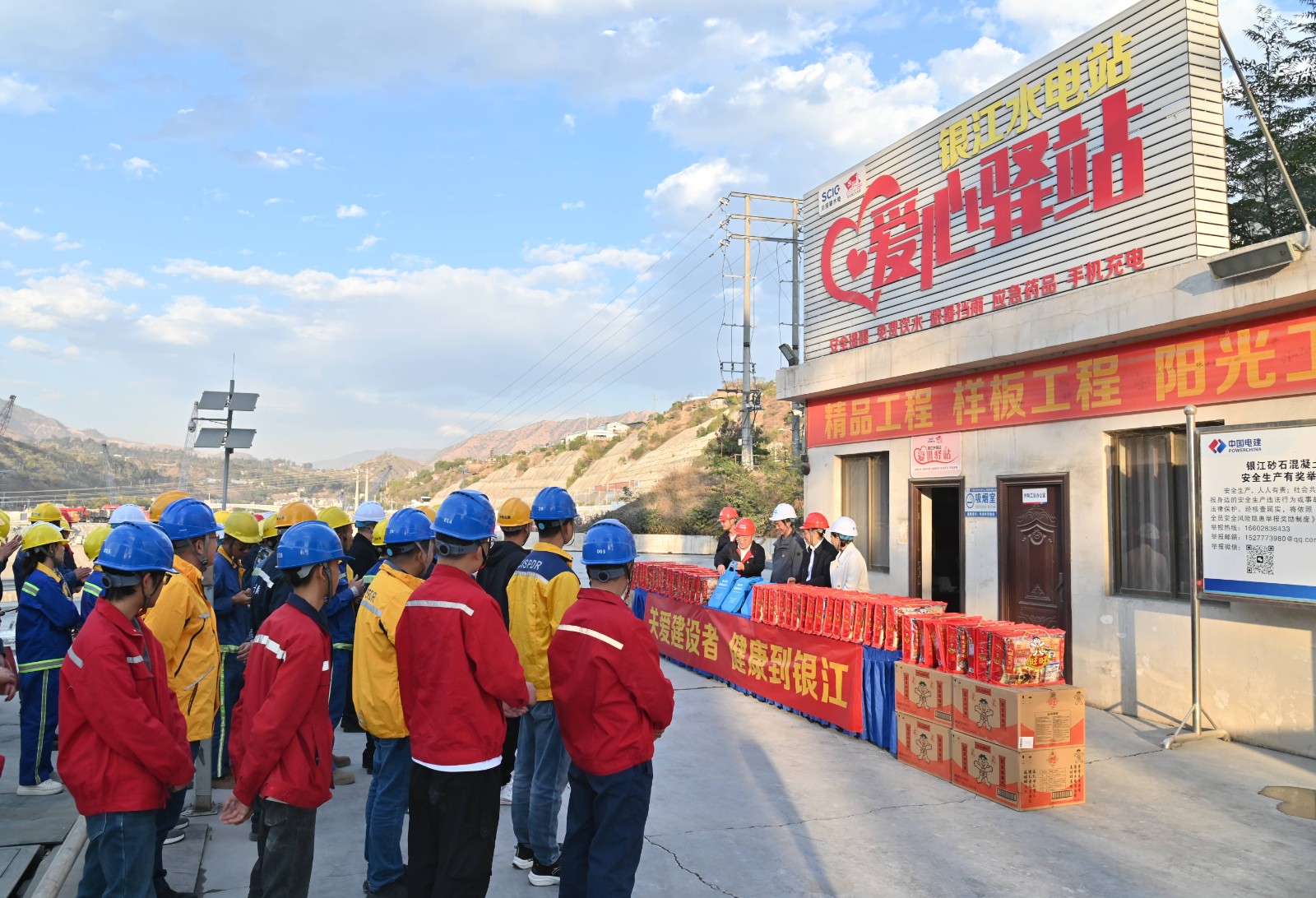 活動首先參觀了公司大黨建宣傳陣地和銀江水電站施工現(xiàn)場。在愛心驛站,黨員們?yōu)閬碜蚤L江設(shè)計院、貴陽院監(jiān)理部、水電五局項目部、水電七局項目部、廣東源天項目部等參建單位的工友發(fā)放了健康宣傳手冊、新春大禮包等慰問物品。田巨龍感慨到銀江水電站工程建設(shè)速度之快難以令人想象,囑咐工友們一定要保重身體、注意自身防護,祝福工友們平平安安、健健康康迎接新年的到來。