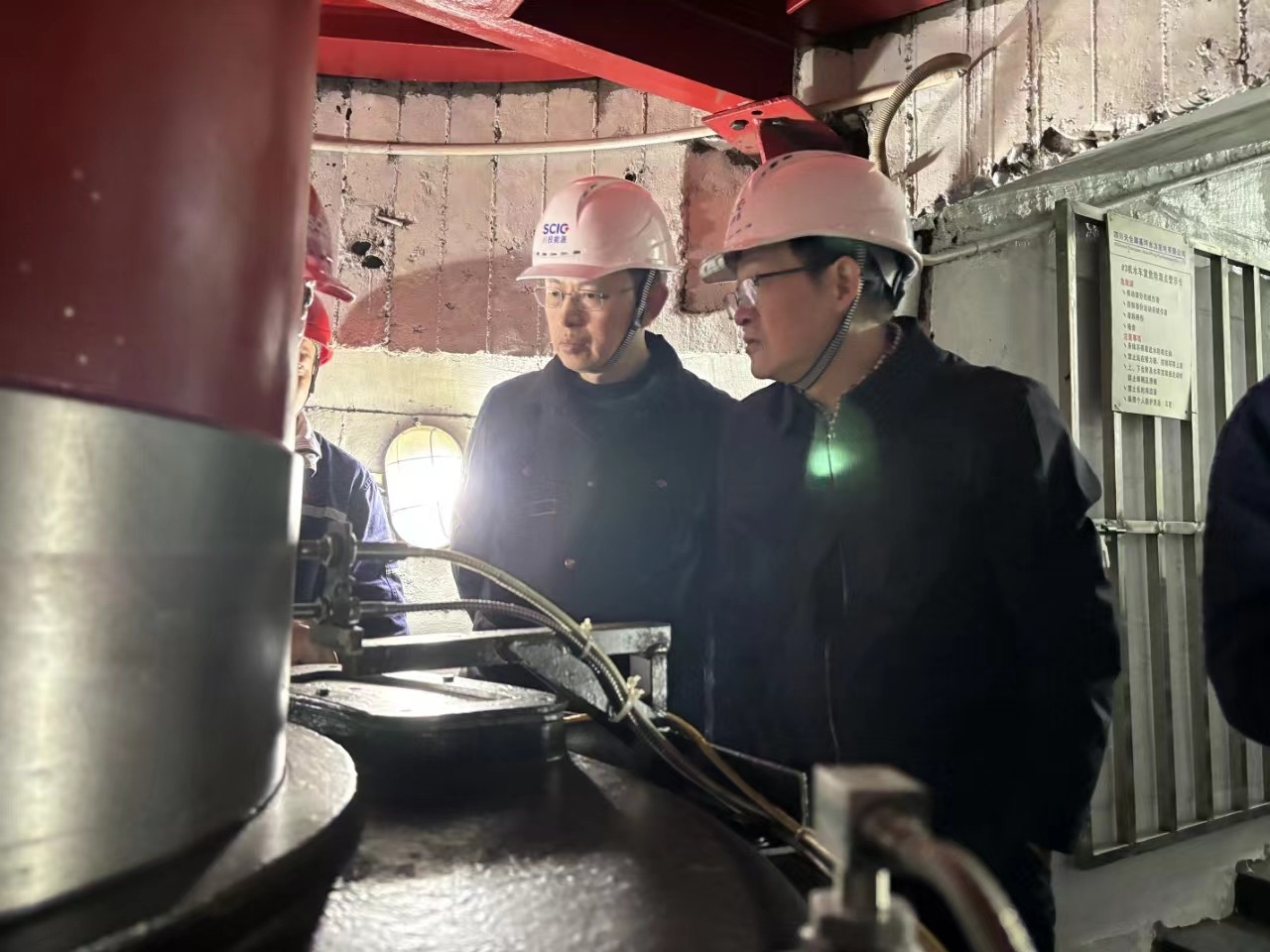楊平一行實(shí)地察看電廠主廠房、發(fā)電機(jī)主設(shè)備、蝶閥、應(yīng)急物資儲(chǔ)備等情況,翻閱抽查風(fēng)險(xiǎn)隱患管理及水淹廠房應(yīng)急管理等資料,指出存在問(wèn)題,提出工作要求。