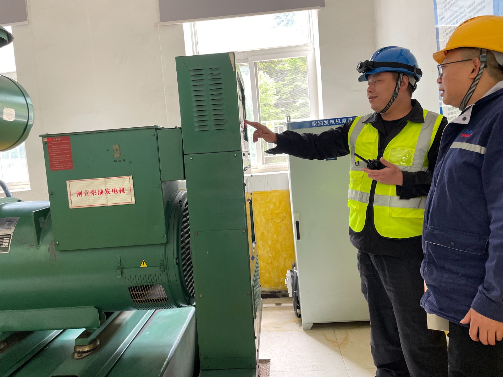 會后,腳基坪電廠開展了防洪搶險應急演練。此次演練以電廠區(qū)域大暴雨天氣,入庫流量達300m3/s,在“三斷”的情景下,遭遇持續(xù)雷雨,致腳全線雷擊跳閘,引起全廠停電,外接電源消失,而此時庫區(qū)水位不斷上漲,柴油發(fā)電機無法啟動為背景。隨著總指揮一聲令下,演練正式開始。各部門嚴格按照《腳基坪水電站2024年度防洪搶險應急預案》《腳基坪水電站2024年度汛期水庫調度運行計劃》,立即響應、迅速集結、分工協(xié)作、有條不紊地開展應急處置。運行人員迅速選擇機組進行黑啟動,完成保廠用電操作,大壩人員迅速啟動柴油發(fā)電機,切換廠用電,啟動泄洪閘門,隨著泄水閘門開啟完成,“險情”得到成功化解。在演練過程中,各操作人員沉著冷靜、配合密切,忙而有序地完成了各項操作,展現(xiàn)出了較高的專業(yè)素養(yǎng)和技術水平,為防洪搶修應急隊伍應對突發(fā)事件積累了實戰(zhàn)經驗。
