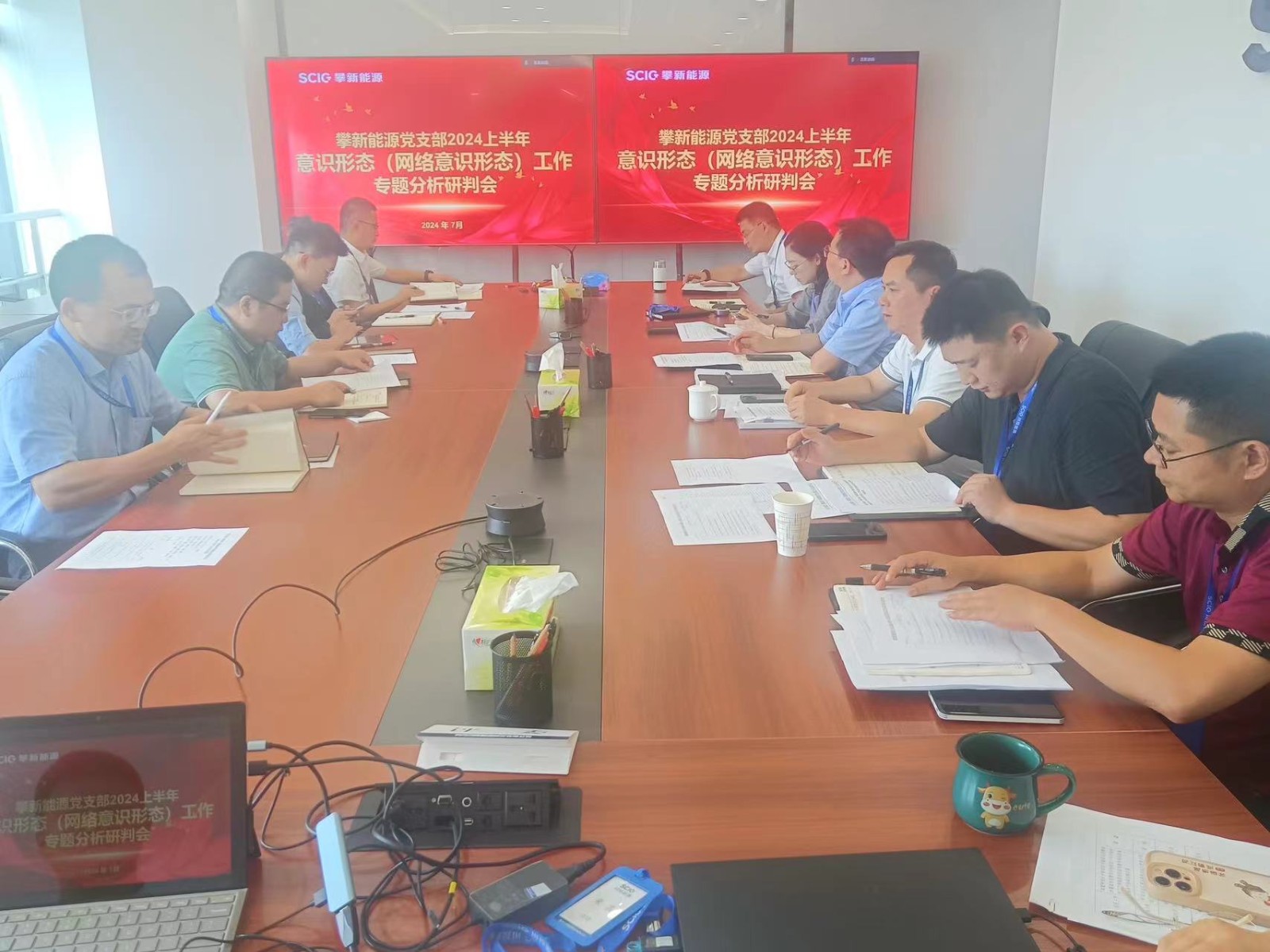 7月29日,攀新能源公司黨支部召開2024年上半年意識形態(tài)(網絡意識形態(tài))工作專題分析研判會,公司黨委書記、董事長王行仁主持會議,全體支部黨員參加會議。