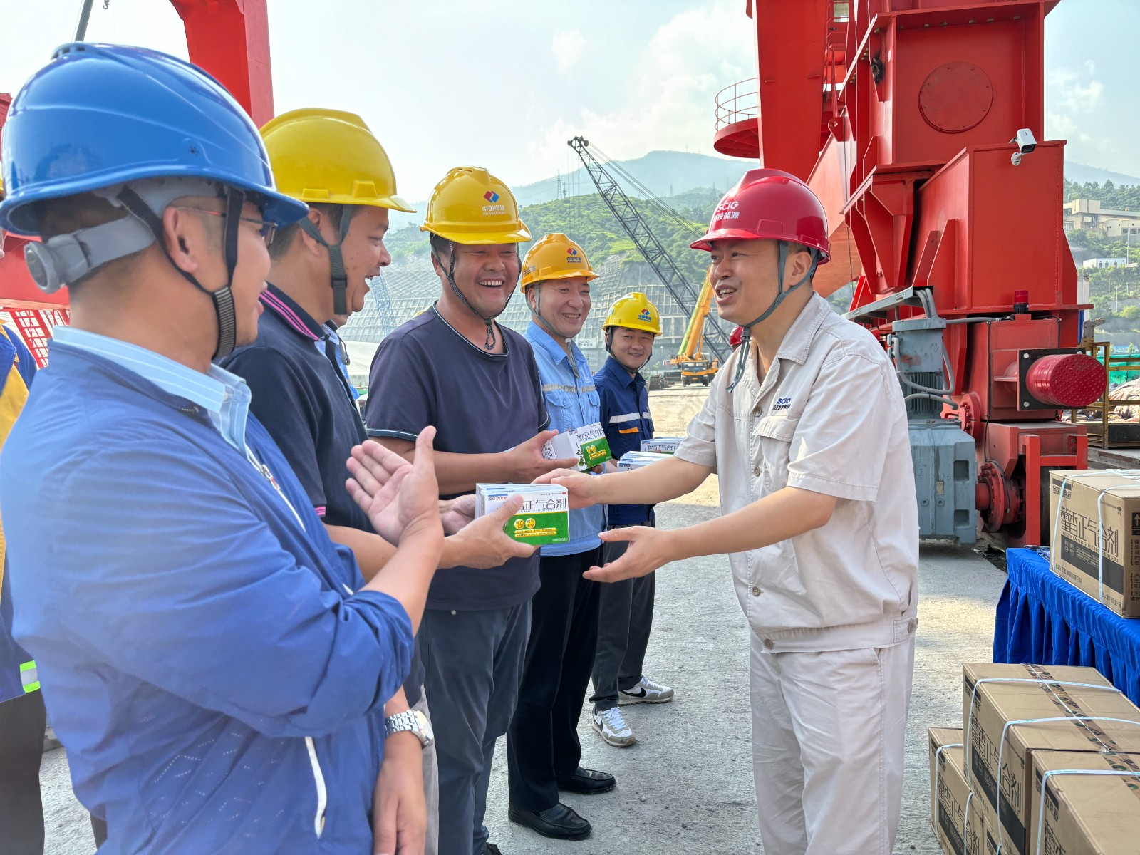 公司工會結合機組投產發(fā)電工作方案和勞動競賽活動,精心策劃并啟動了系列溫馨而務實的慰問活動,向奮戰(zhàn)在工程一線的建設者們表達公司的關心關愛,為大家送去生活必需品、藿香正氣液、西瓜、銀耳湯等慰問物資。通過系列慰問活動,不僅為一線工友提供了實質性的幫助,更在情感上拉近了與大家的距離,增強了團隊的凝聚力、向心力與戰(zhàn)斗力。