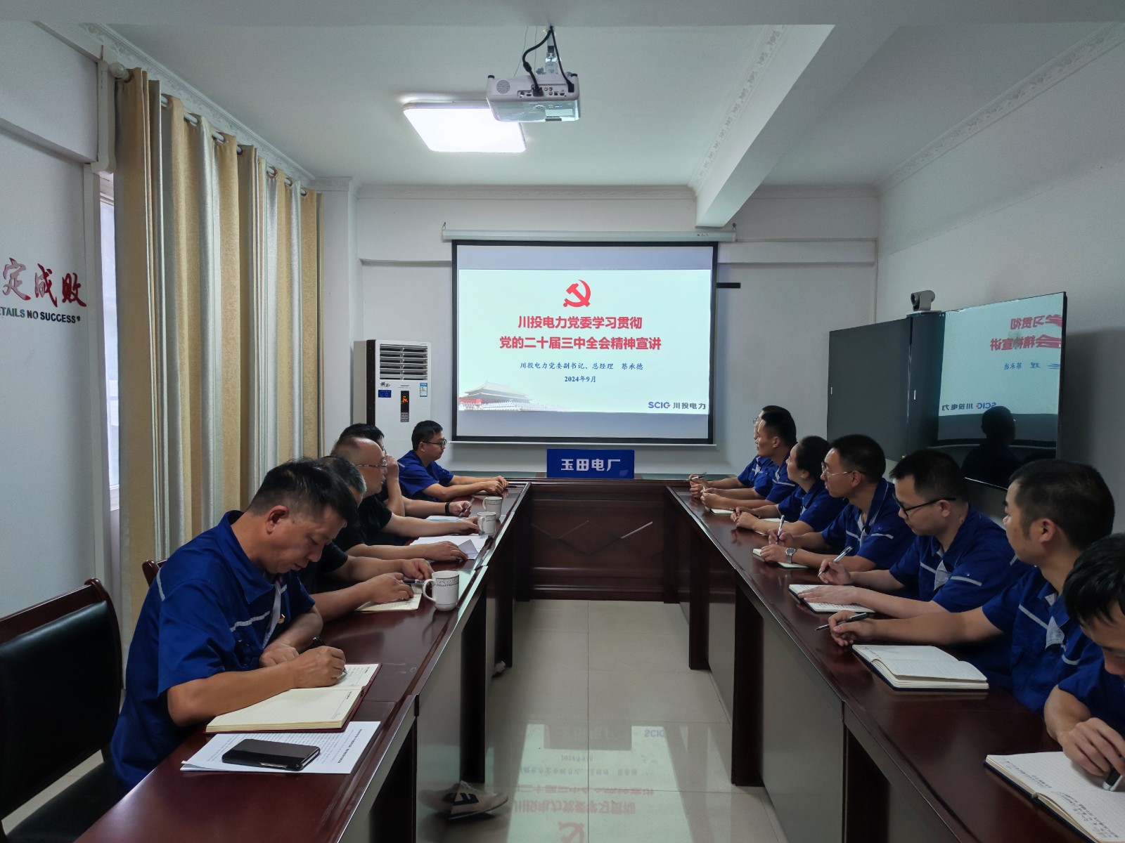 為深入學(xué)習(xí)貫徹黨的二十屆三中全會精神,推動全會精神落實落地,9月11日,川投電力黨委副書記、總經(jīng)理蔡承德按照川投電力黨委統(tǒng)籌安排,赴玉田電廠黨支部開展黨的二十屆三中全會精神專題宣講,同時督導(dǎo)全會精神的學(xué)習(xí)宣傳貫徹工作。
