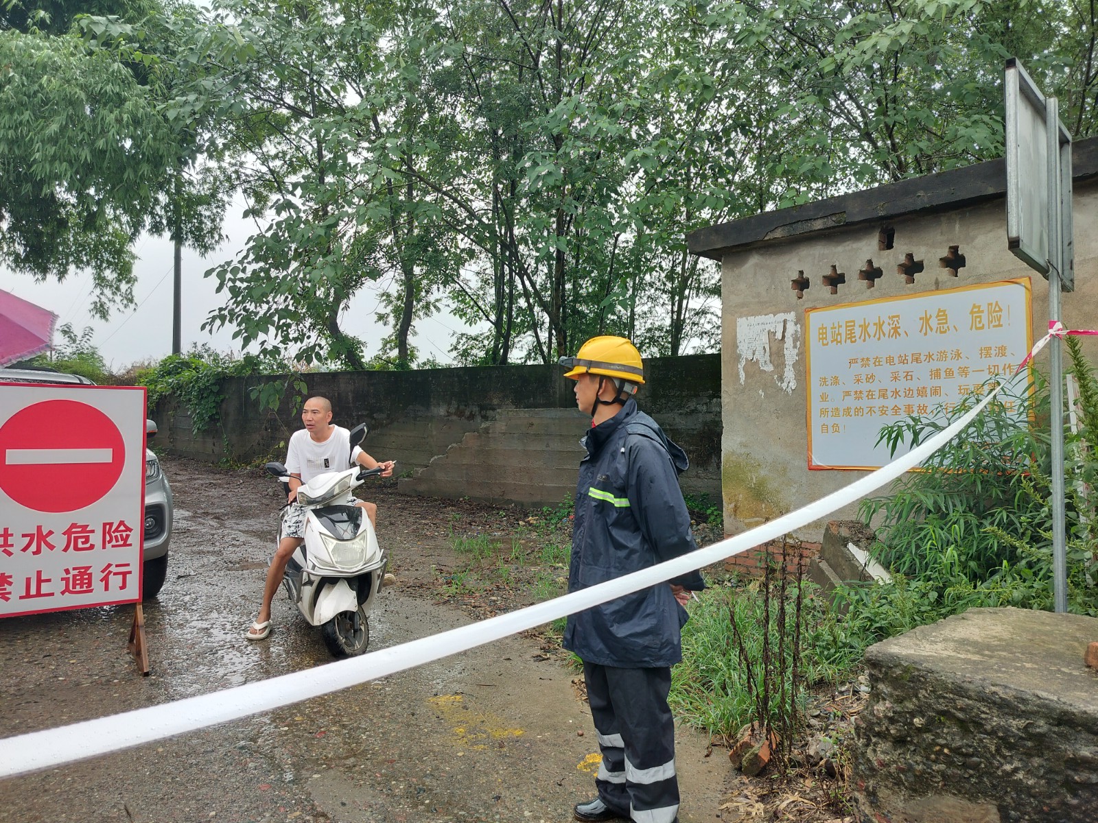 隨著雨水和洪水的疊加,入庫流量持續(xù)上漲,6時(shí)42分,百花灘電廠入庫流量達(dá)到10889 m3/s,為2020年“8?18”洪水以來最大洪峰。面對如此大的洪水,電廠按照要求啟動了年度首個(gè)防洪Ⅳ級應(yīng)急響應(yīng),在洪雅縣休假的員工也主動返崗參加防洪,積極配合地方政府和電廠按照應(yīng)急響應(yīng)流程參與防洪工作。他們一方面積極參與協(xié)助附近村民落實(shí)“三避讓”和“三個(gè)緊急撤離”剛性要求,另一方面積極開展電廠防汛巡查、防汛沙袋搬運(yùn)和封堵。為防止發(fā)生意外,電廠職工鄭勇和龍宇虹凌晨4時(shí)20分冒雨前往防汛風(fēng)險(xiǎn)點(diǎn)拉起警戒線,耐心引導(dǎo)村民選擇安全路線實(shí)施避讓和撤離。