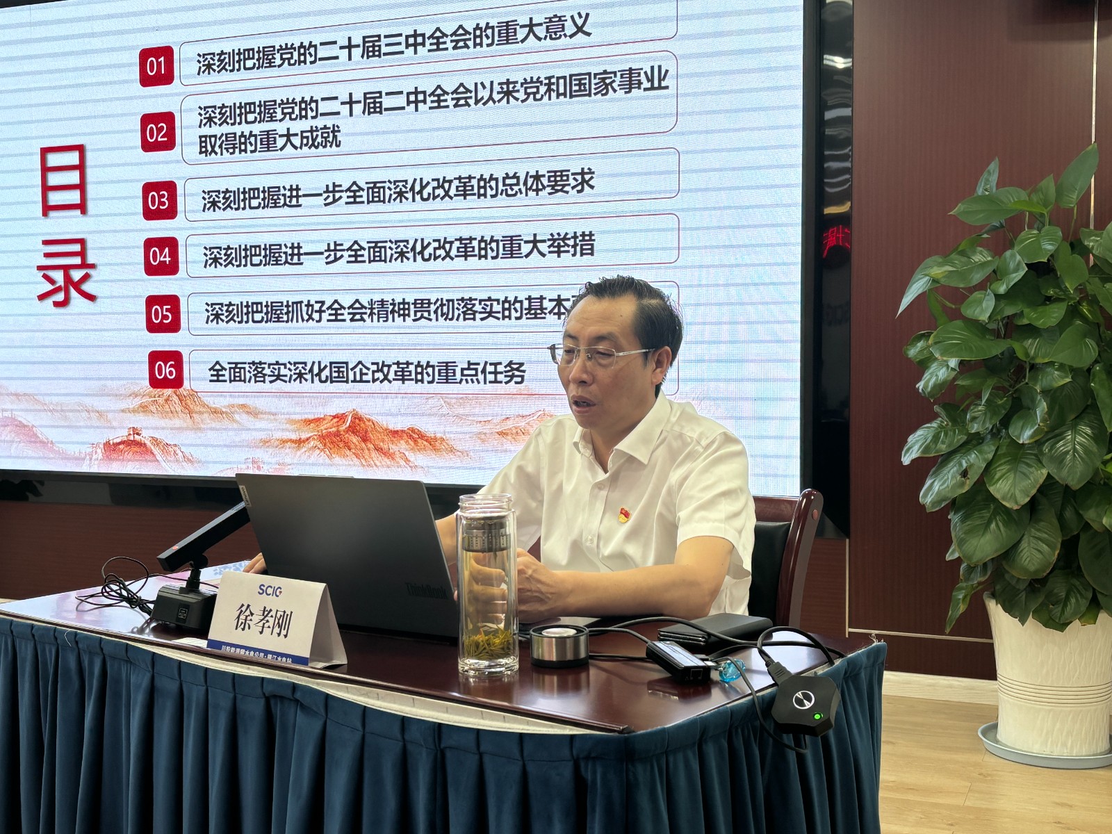 9月18日,攀水電黨總支在2620會議室召開了黨的二十屆三中全會精神宣講會暨2024年第12次政治理論學習(擴大)會議,川投能源副總經(jīng)理、攀水電公司黨總支書記、董事長徐孝剛主持會議,攀水電黨總支政治理論學習會成員、全體中干、黨員、統(tǒng)戰(zhàn)對象、入黨積極分子共30余人參加學習。