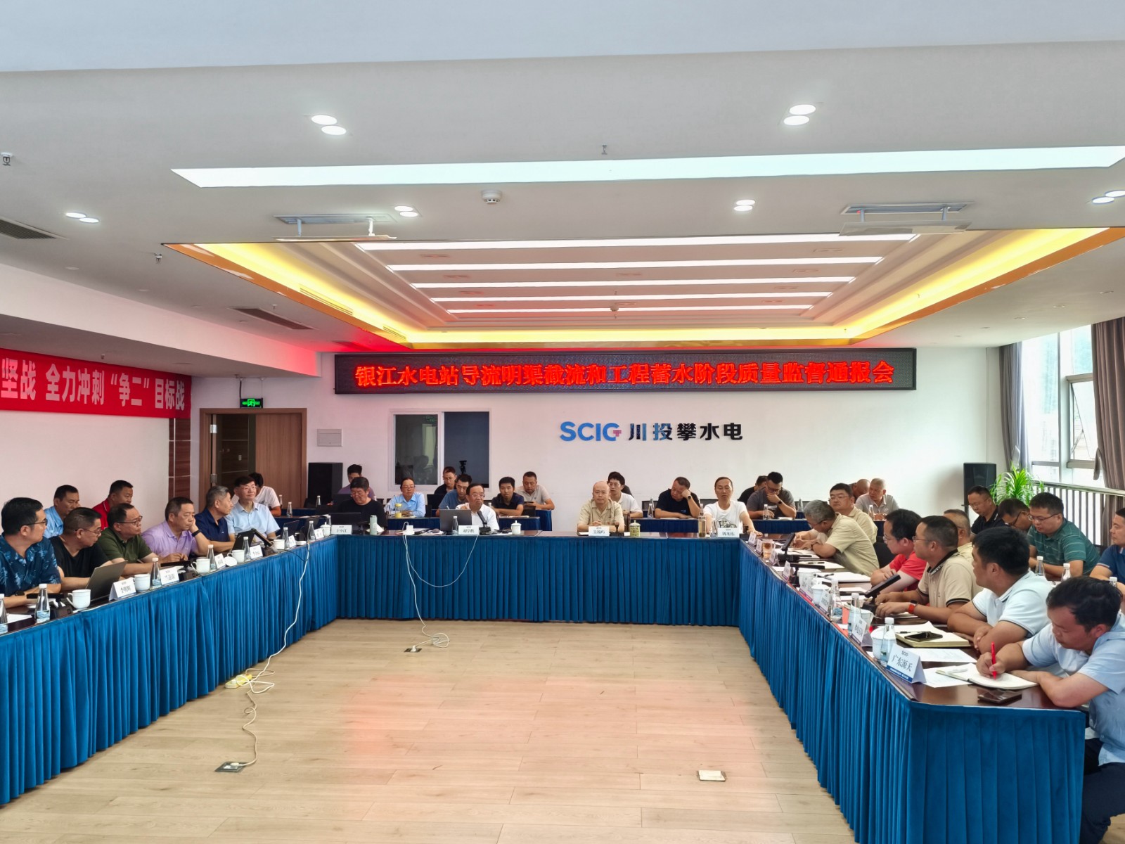 9月21下午,在進行多次檢查和交流后,專家組組長劉學鵬在公司2620會議室主持召開了銀江水電站導流明渠截流和工程蓄水階段質量監(jiān)督通報會,攀水電公司領導、各部門負責人及各參建單位負責人共40余人參加會議。專家組與各參建單位進行了充分的討論并交換意見,形成了銀江水電站導流明渠截流和工程蓄水階段質量監(jiān)督報告。報告指出,截至目前,與導流明渠截流及工程蓄水相關的土建工程、金屬結構工程、安全監(jiān)測工程基本完成,剩余尾工及消缺處理等工作已有計劃安排并在抓緊施工;導流明渠截流及工程蓄水組織機構已建立,導流明渠截流及工程蓄水技術要求已提交,實施方案完成初稿編制,部分技術文件正在完善中。銀江水電站具備擇機進行導流明渠截流及工程蓄水條件。