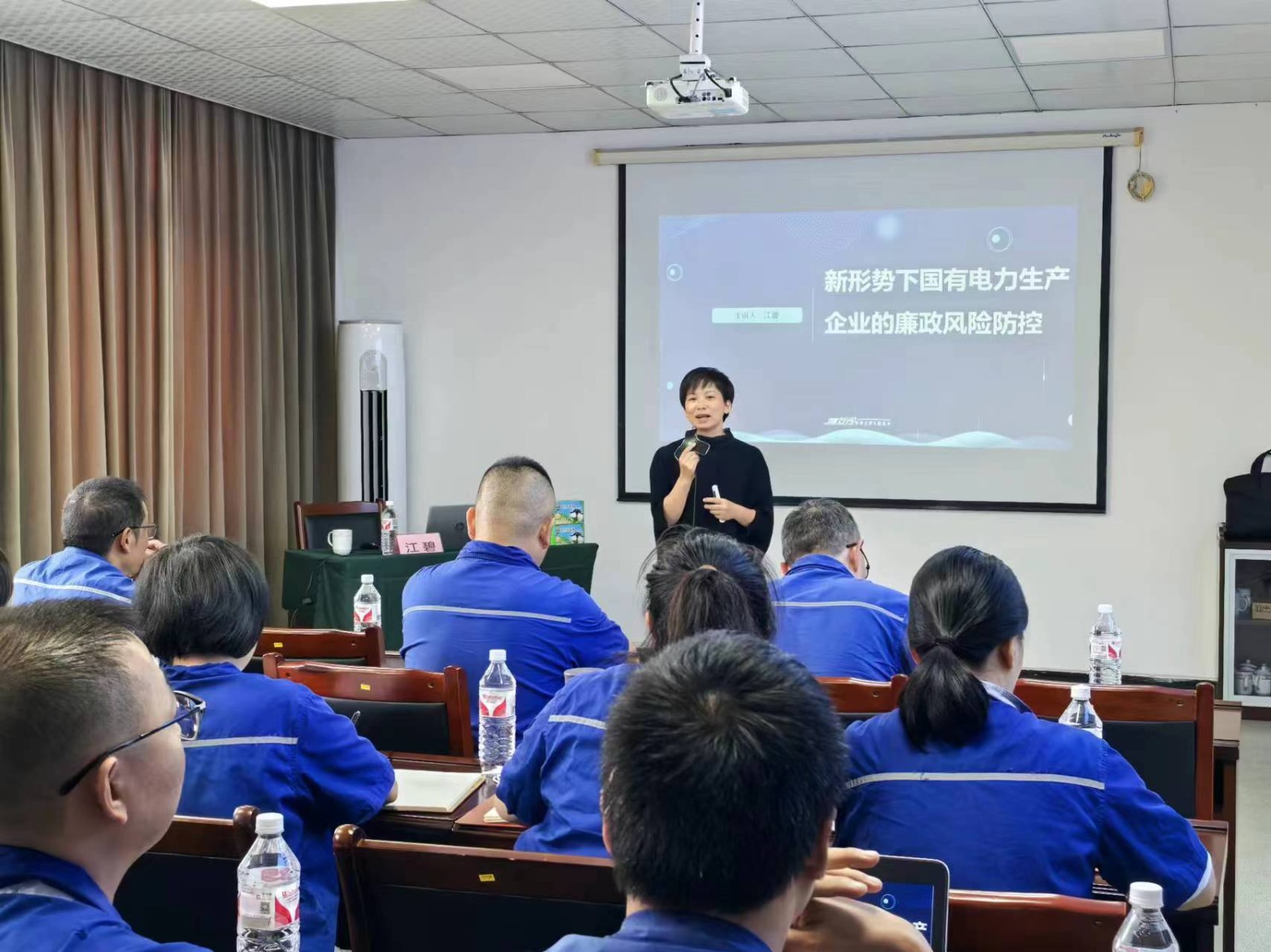 為全面提升電力生產(chǎn)企業(yè)的廉政風(fēng)險(xiǎn)防范能力,筑牢電廠干部職工拒腐防變的思想防線,近日,百花灘黨支部承辦川投電力2024年第三季度“講廉規(guī) 守廉矩”三期廉潔教育輪訓(xùn)交流會,邀請洪雅縣紀(jì)委監(jiān)委駐財(cái)政局紀(jì)檢監(jiān)察組組長江碧,現(xiàn)場講授《新形勢下電力生產(chǎn)企業(yè)的廉政風(fēng)險(xiǎn)》知識講座。