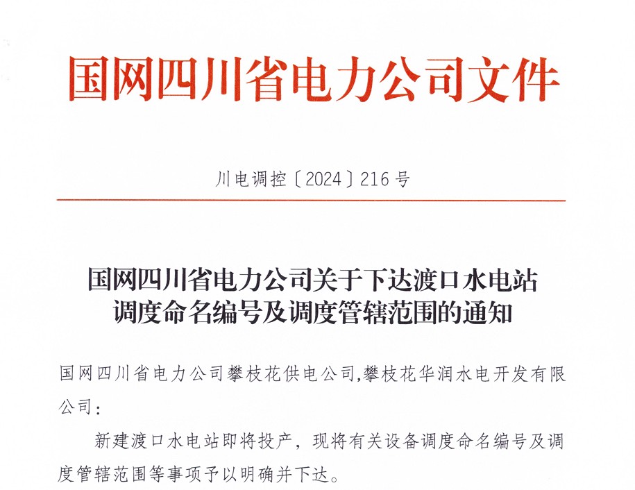 銀江水電站投產(chǎn)發(fā)電在即,因“銀江”二字已被銀江變電站占用,攀水電公司動(dòng)員全體員工集思廣益,挑選符合規(guī)定又有寓意的調(diào)度名。10月8日,在國網(wǎng)四川省電力公司和川投能源的指導(dǎo)幫助下,經(jīng)過積極對(duì)接、多方協(xié)調(diào),攀水電公司成功取得國網(wǎng)四川省電力公司對(duì)銀江水電站和送出線路的調(diào)度命名,銀江水電站的調(diào)度名為“渡口水電站”,銀江水電站220kV送出線路調(diào)度名為“220kV渡銀線”。