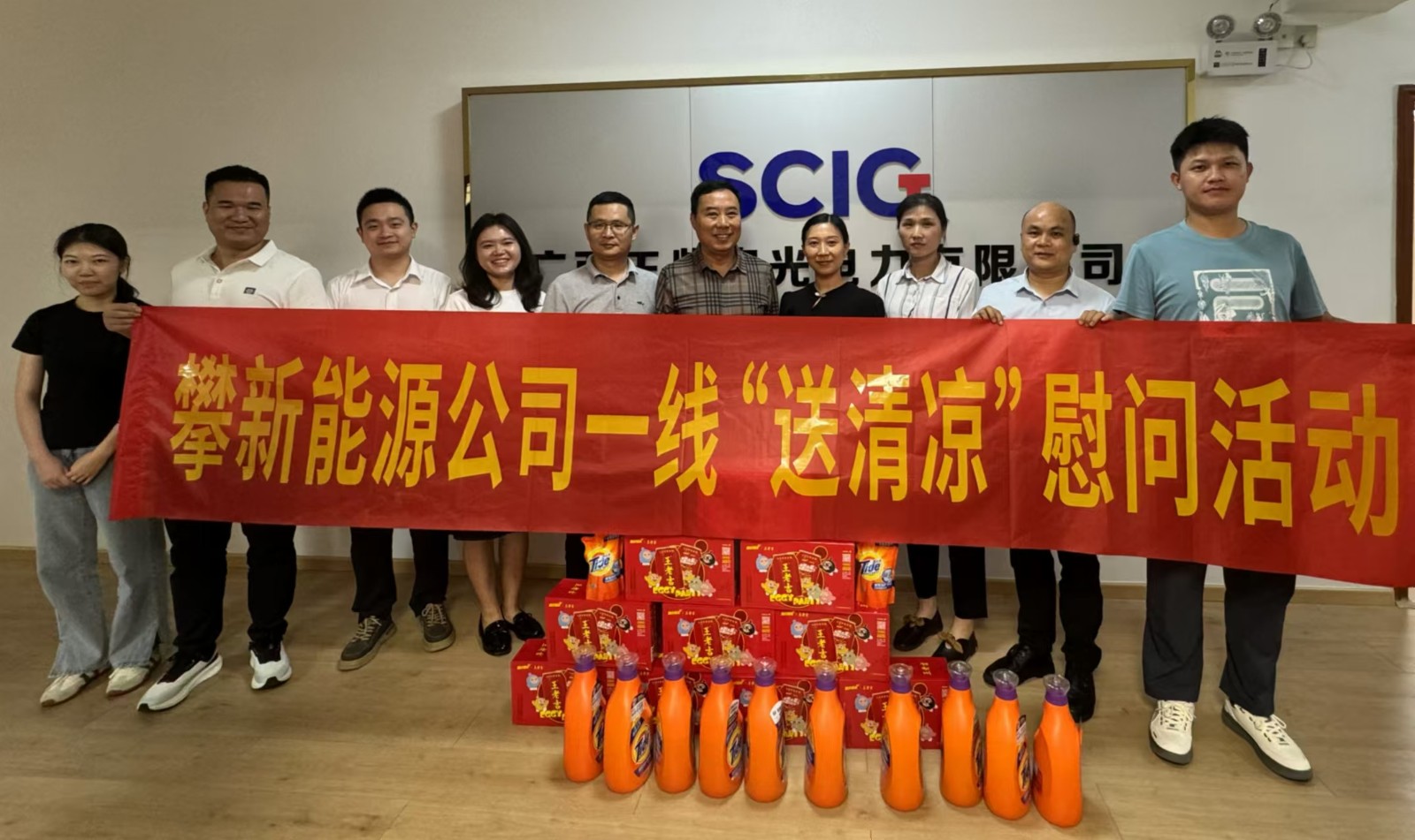 炎夏送清涼,溫情暖人心。攀新能源公司為進(jìn)一步做好防暑降溫工作,深切關(guān)懷在項(xiàng)目現(xiàn)場(chǎng)作業(yè)的一線職工職業(yè)健康,確?,F(xiàn)場(chǎng)安全生產(chǎn),組織開展了“送清涼”一線慰問(wèn)活動(dòng)。攀新能源公司黨支部委員、總經(jīng)理周軍帶隊(duì)“送清涼”慰問(wèn)小組,依次前往廣西農(nóng)光公司、桂平光伏電站、廣西融安公司光伏發(fā)電站項(xiàng)目現(xiàn)場(chǎng),為辛勤工作的勞動(dòng)者們送去清涼與關(guān)懷。
