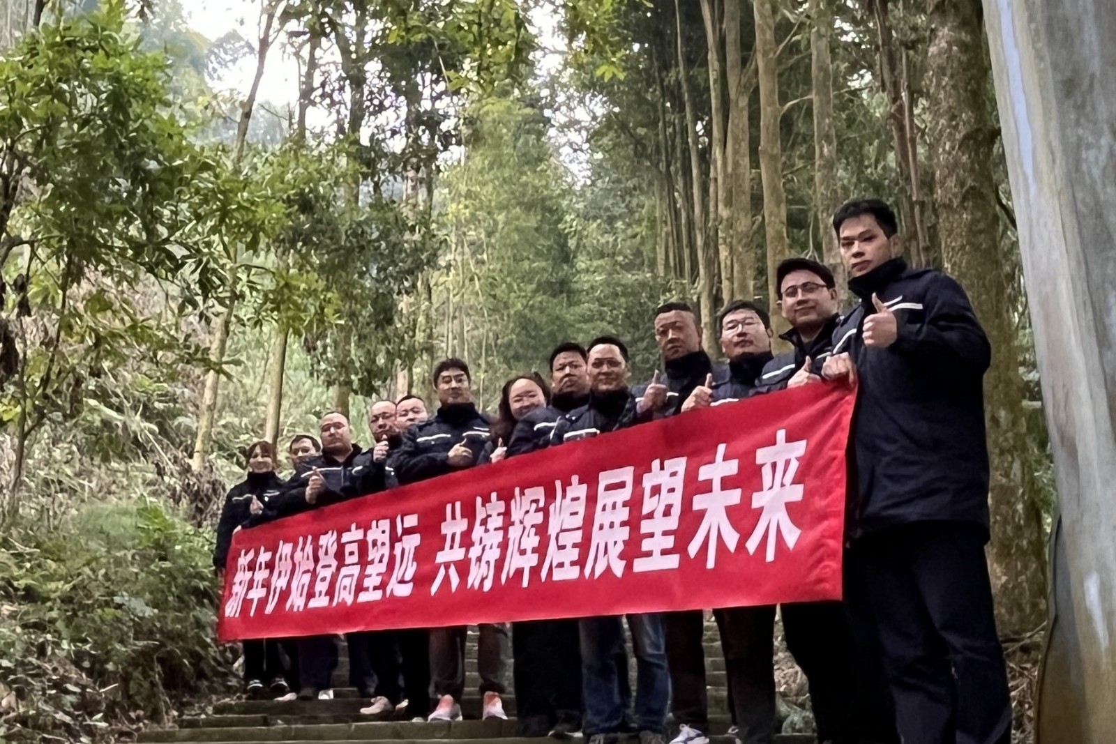 深冬的山谷,青山綠水,風(fēng)光獨好。全體人員在腳基坪黨支部書記、廠長趙兵的帶領(lǐng)下,精神抖擻地前往文筆山。登山過程中,大家互相鼓勵、互相幫助,展現(xiàn)了良好的團隊協(xié)作精神。在山頂,由黨員李彥瑾領(lǐng)誦,全體人員齊聲誦讀《七律?長征》,既是對紅軍長征歷史的回顧和緬懷,也是對革命精神的傳承和弘揚。