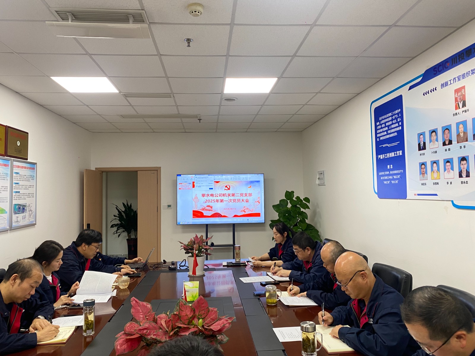 2月27日,攀水電公司機關第二黨支部組織召開2025年第一次黨員大會暨主題黨日活動,支部全體黨員、入黨積極分子參加會議。