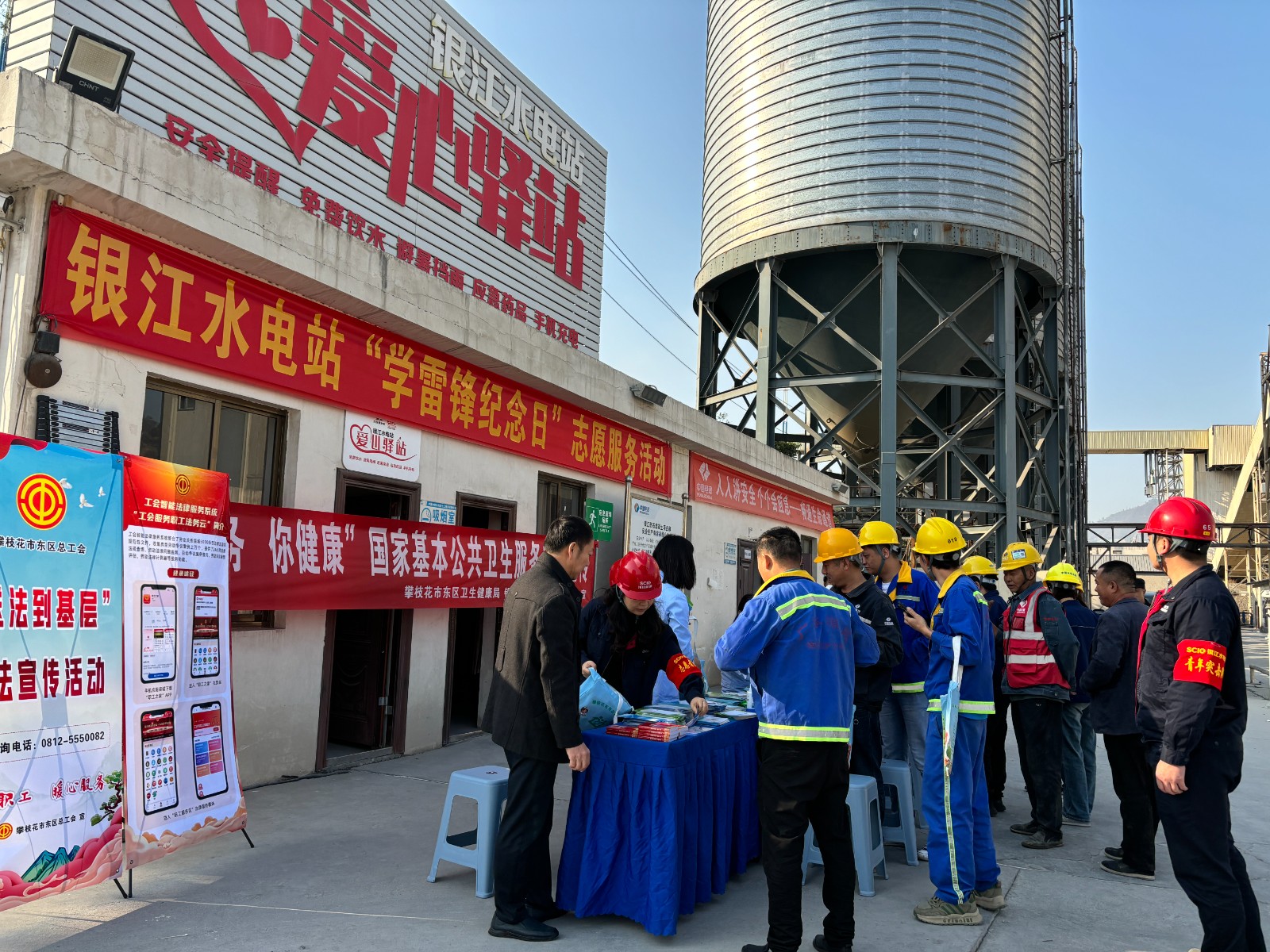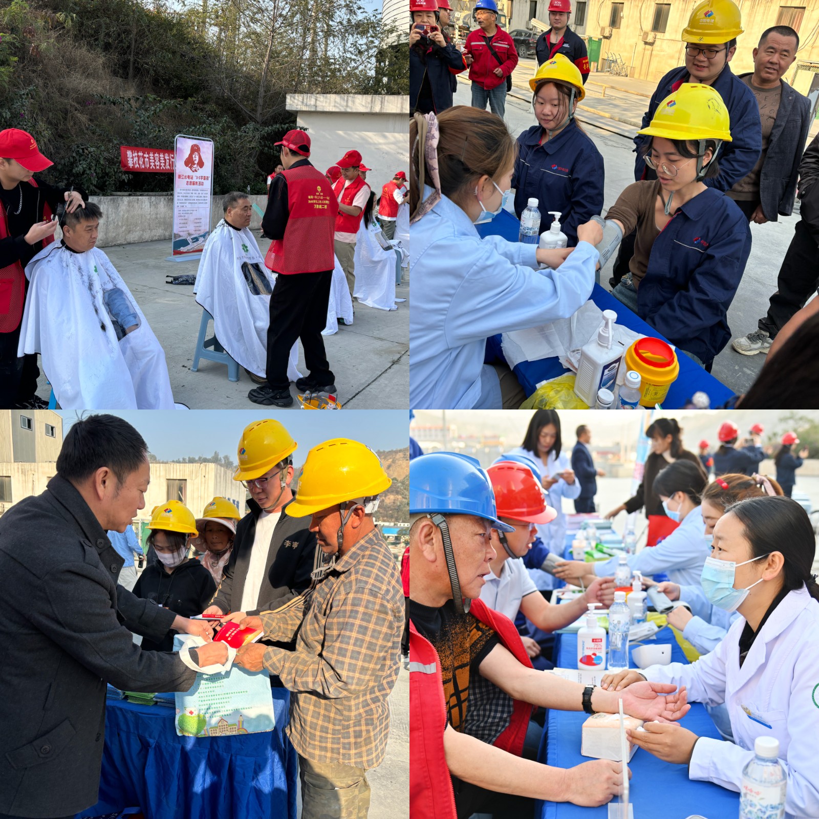 活動(dòng)現(xiàn)場(chǎng),銀江工地愛(ài)心驛站變身“時(shí)尚沙龍”?,攀枝花市美容美發(fā)行業(yè)協(xié)會(huì)10名專業(yè)理發(fā)師現(xiàn)場(chǎng)打造“10分鐘快剪”服務(wù)圈,公司工會(huì)同步提供消毒濕巾、免洗洗手液,確保大家剪完發(fā),清清爽爽上工去;銀江鎮(zhèn)衛(wèi)生院創(chuàng)新推出“移動(dòng)健康管家”服務(wù),由4名醫(yī)務(wù)人員分別進(jìn)行血糖、血壓測(cè)量,為居住半年以上時(shí)間的居民建立健康檔案,簽約家庭醫(yī)生服務(wù),為慢性病患者建檔,更有中醫(yī)把脈問(wèn)診開展健康咨詢解答等;安全健康知識(shí)“沉浸教學(xué)”?,多名志愿者為一線建設(shè)者開展中暑、熱射病、春季流感預(yù)防等職業(yè)健康治知識(shí)宣傳,發(fā)放健康教育宣傳資料,為職工發(fā)放《安全生產(chǎn)法》《四川省安全生產(chǎn)條例》《安全生產(chǎn)與勞動(dòng)保護(hù)職工學(xué)習(xí)手冊(cè)》《職業(yè)病防治宣傳手冊(cè)》《應(yīng)急逃生知識(shí)宣傳冊(cè)》等資料1000余份,將雷鋒精神轉(zhuǎn)化為常態(tài)化服務(wù),?贏得了一線職工的一致好評(píng)。?