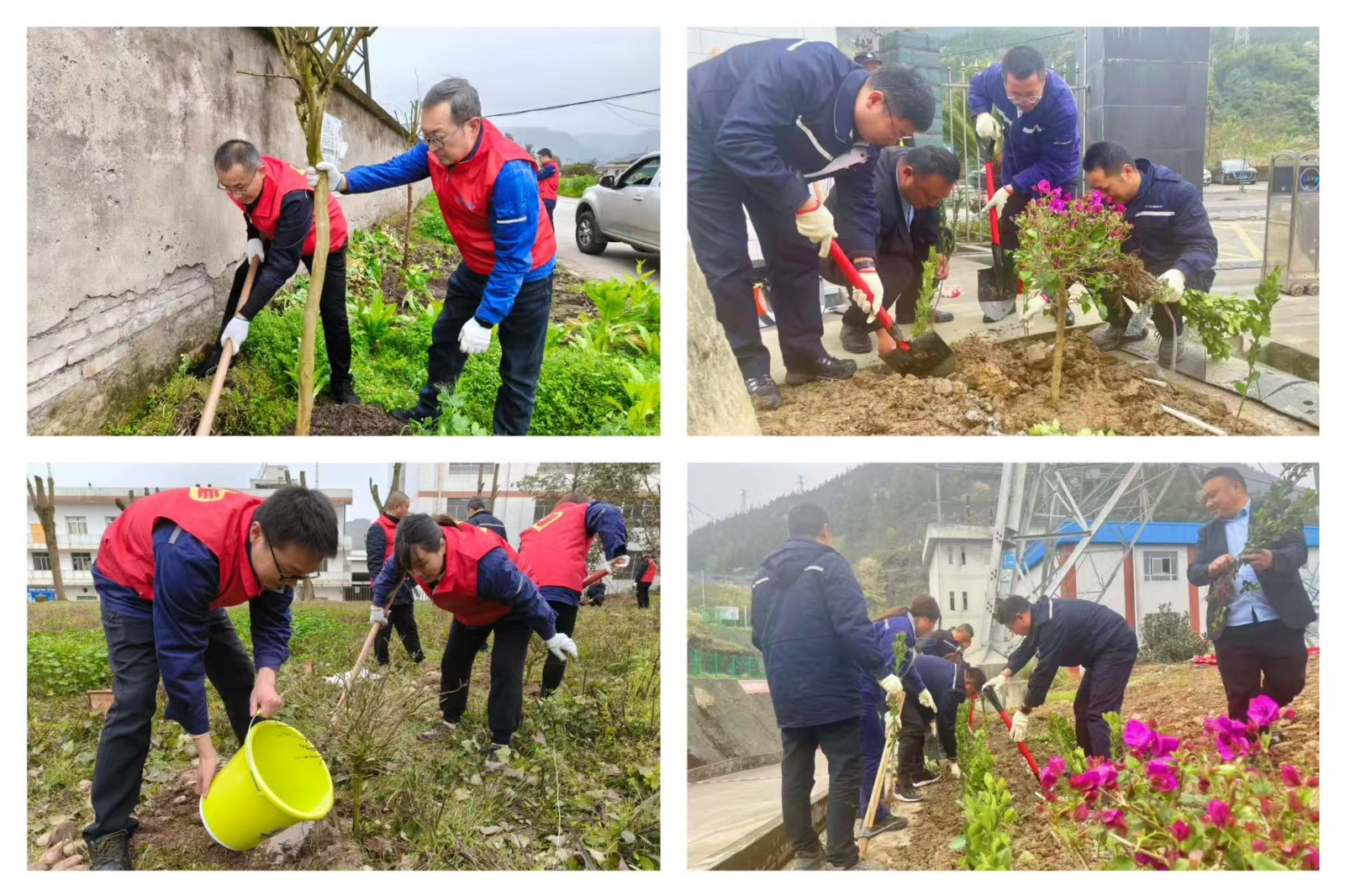 活動(dòng)當(dāng)天,高奉山電廠、腳基坪電廠全體員工積極參與,大家分工協(xié)作,干勁十足?;顒?dòng)現(xiàn)場(chǎng),員工們揮鍬鏟土、扶苗填坑、澆水灌溉,每一道工序都認(rèn)真細(xì)致,經(jīng)過(guò)一上午的辛勤勞動(dòng),電廠周邊的空地上種下了一排排整齊的樹(shù)苗,為廠區(qū)增添了一片新綠。同時(shí),槽漁灘公司黨員服務(wù)群眾先鋒隊(duì)在青衣江江畔開(kāi)展垃圾清理志愿服務(wù)。