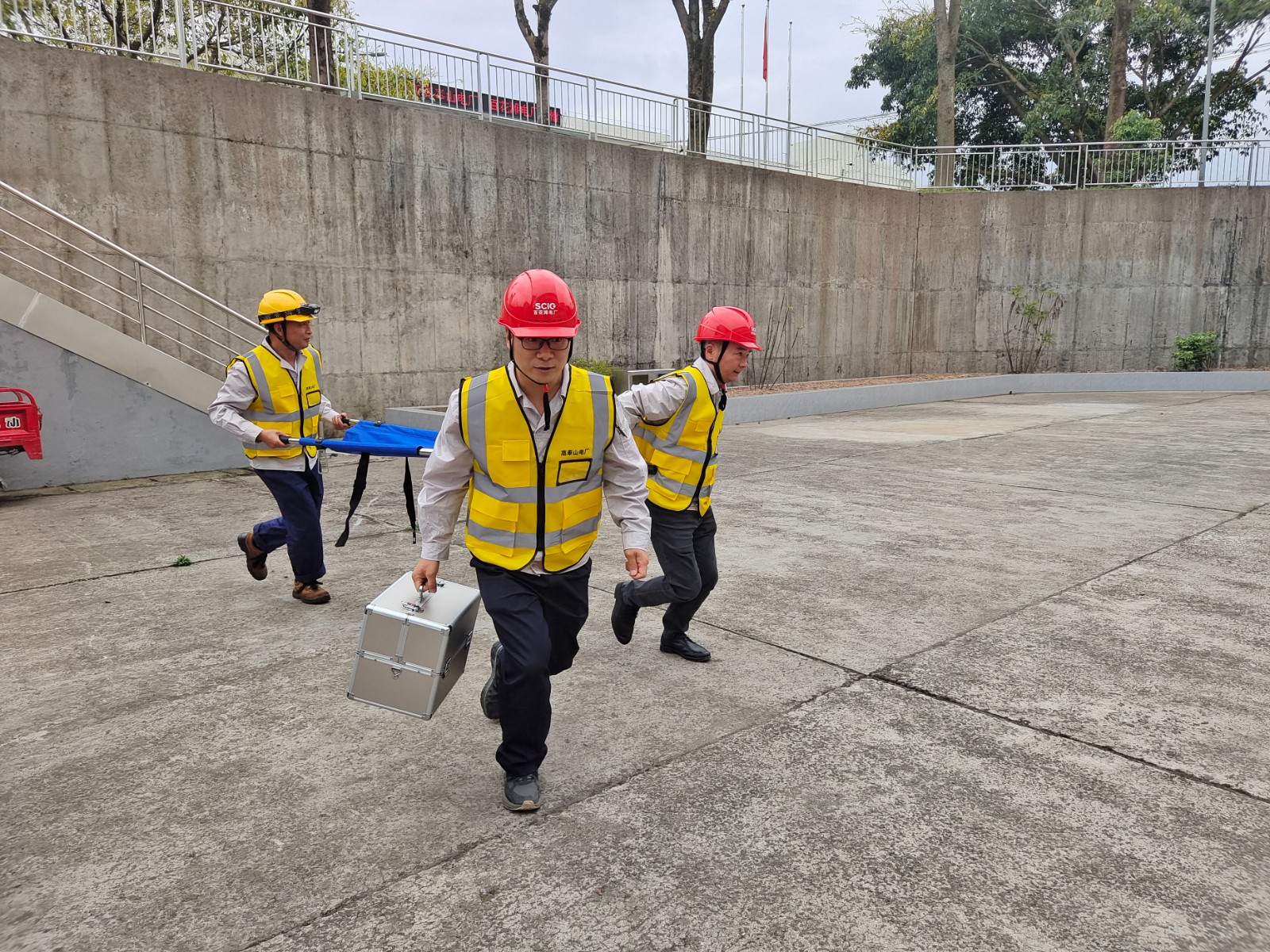 下午14:30分,隨著第一聲警報(bào)聲響起,聯(lián)合演練正式拉開序幕,全體參演人員立即停止工作,進(jìn)行緊急避險(xiǎn)。地震預(yù)警結(jié)束后,參演電廠人員,同步按照本電廠疏散路線疏散至應(yīng)急集合點(diǎn)。演練中各廠疏散撤離到應(yīng)急集合點(diǎn)僅在2分內(nèi)全部完成,整個(gè)疏散撤離過程既緊張,又有條不紊。疏散至緊急集合點(diǎn)后,各廠立即組織清點(diǎn)人數(shù),并向聯(lián)合演練指揮部報(bào)告電廠設(shè)備情況和人員疏散情況。聯(lián)合演練總指揮立即宣布啟動(dòng)地震二級響應(yīng),各電廠同步啟動(dòng)地震二級響應(yīng),各廠應(yīng)急救援組迅速行動(dòng)起來,攜帶應(yīng)急搶險(xiǎn)救援設(shè)備,對本廠內(nèi)的設(shè)備設(shè)施進(jìn)行檢查和搶險(xiǎn)救援。